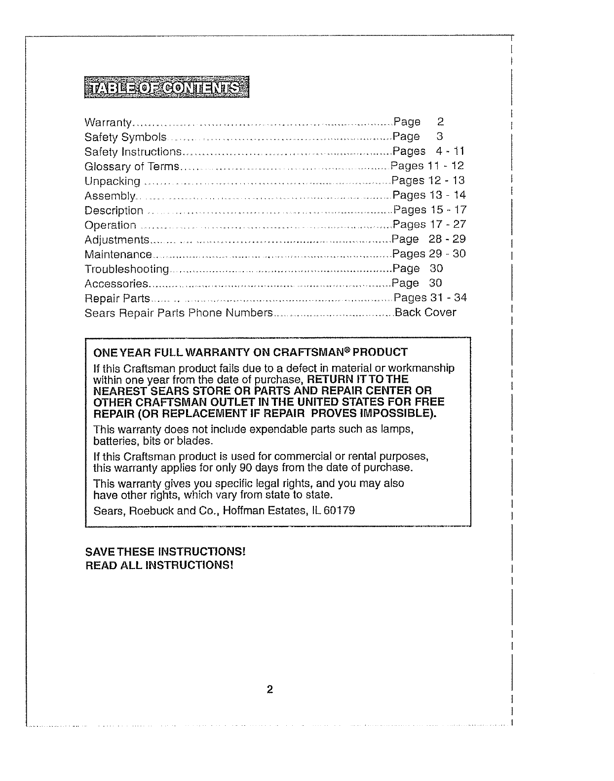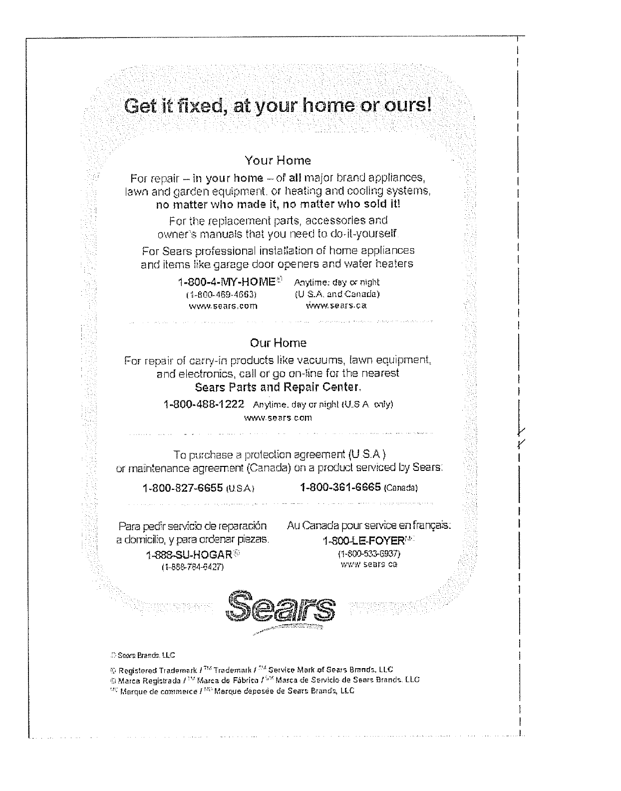 Sears Repair Parts Phone Numbers ............................................. Back Cover