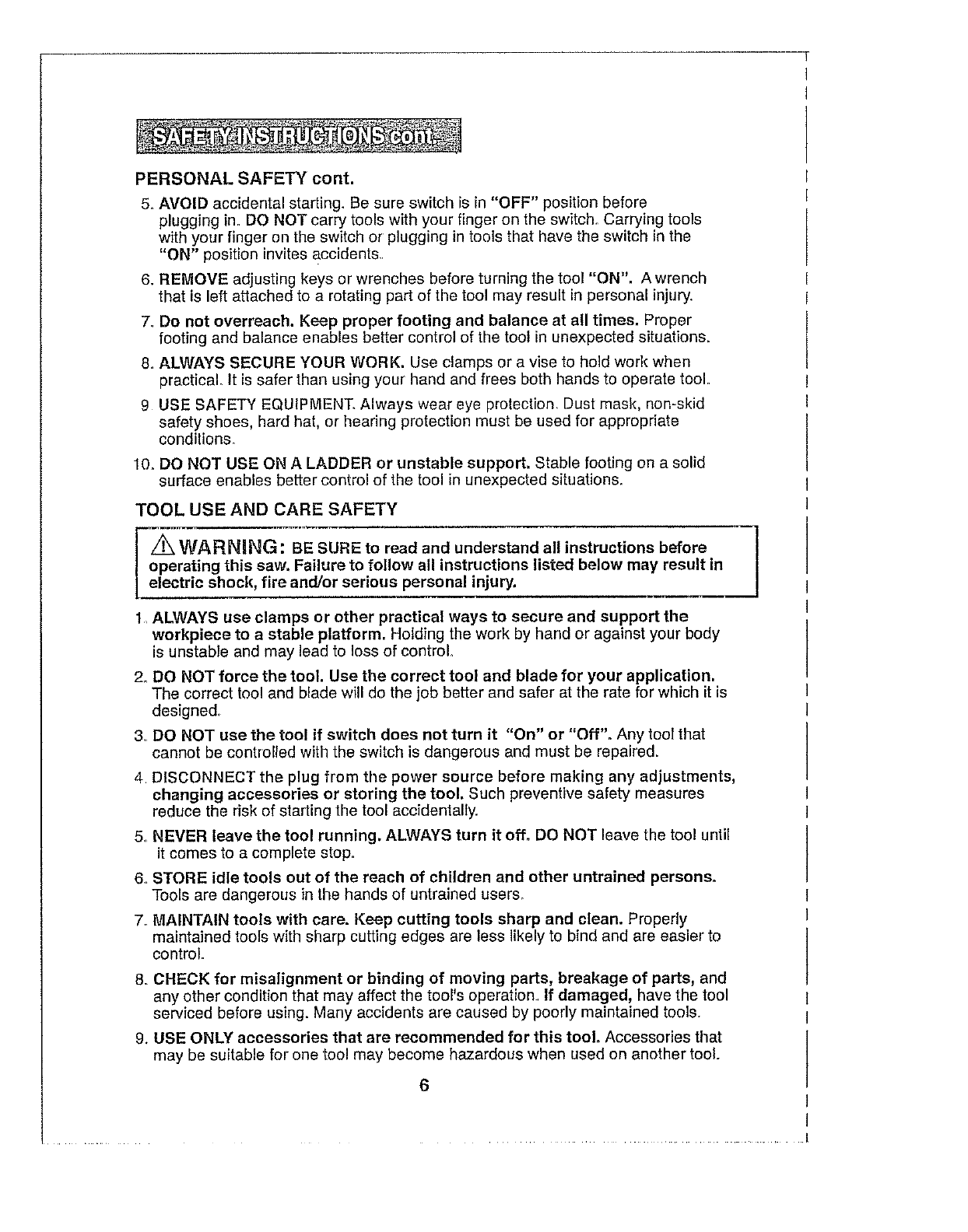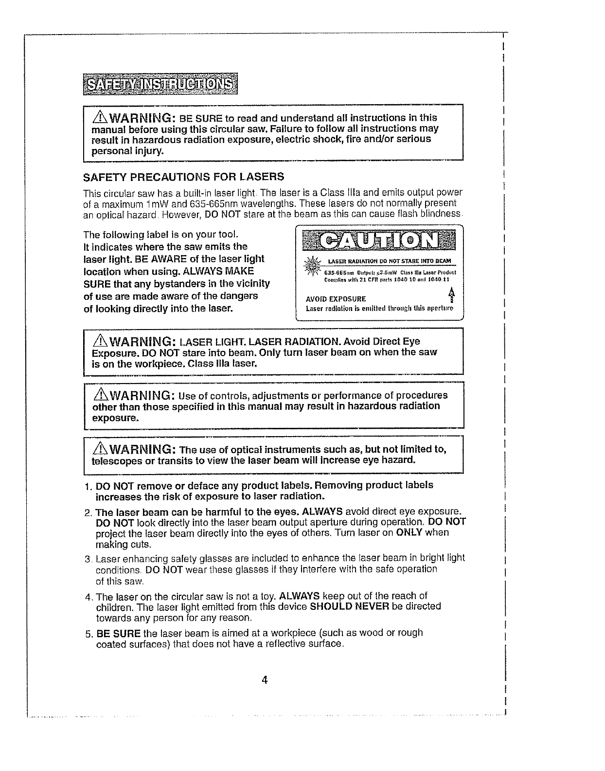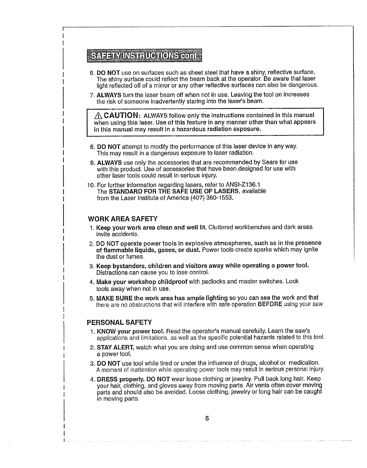 Iand CAUTION ,BEFORE using this saw. Failure to follow all instructions