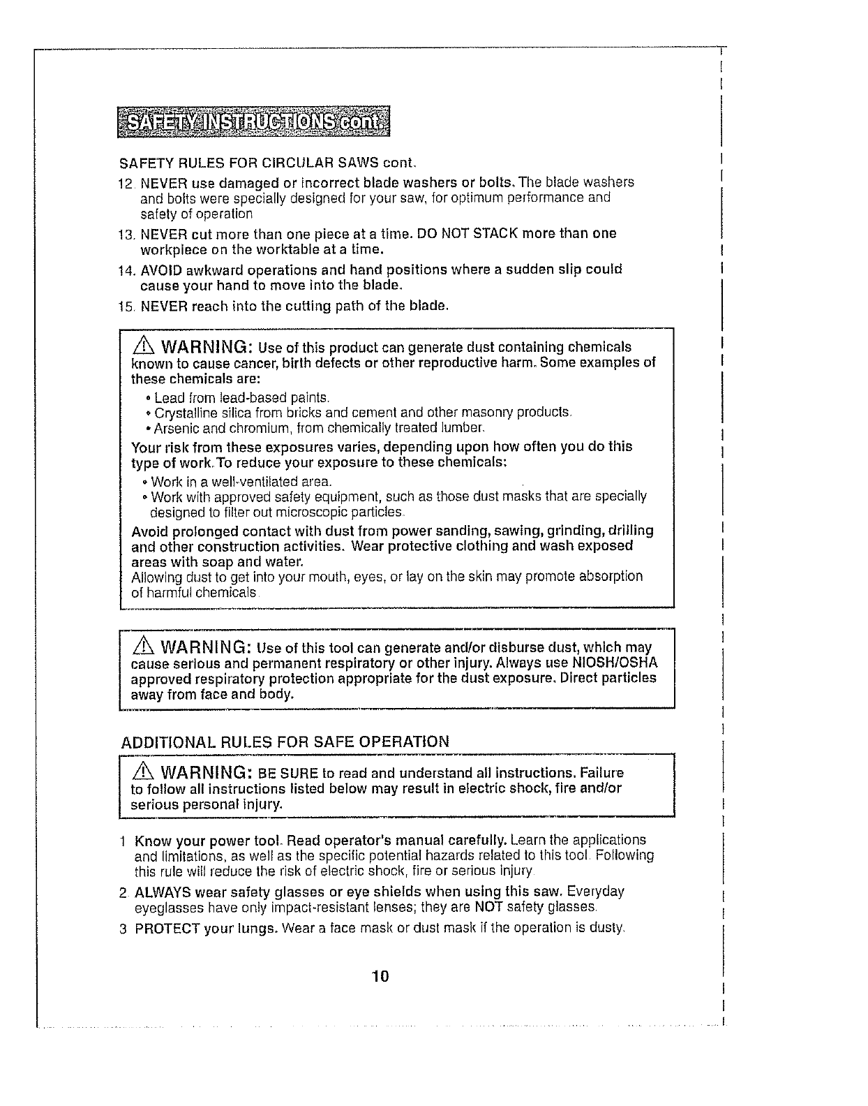 WEAR YOUR z_WARNING: The operation of any tool with a cimular