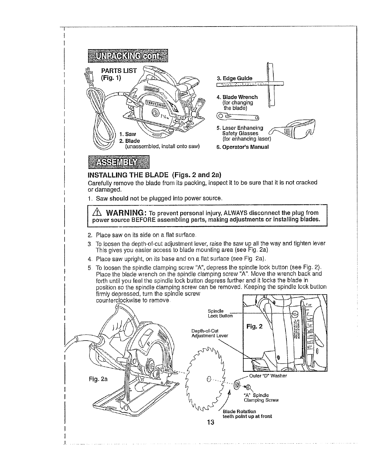 CRAFTSMAN Saw Circular Manual L0807532 CRAFTSMAN Saw Circular Owner's Manual, CRAFTSMAN Saw Circular installation guides