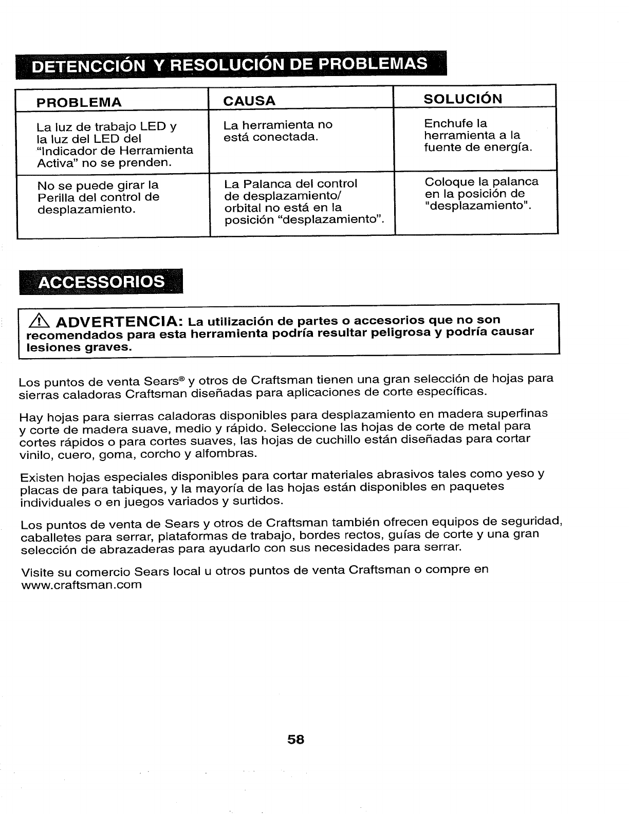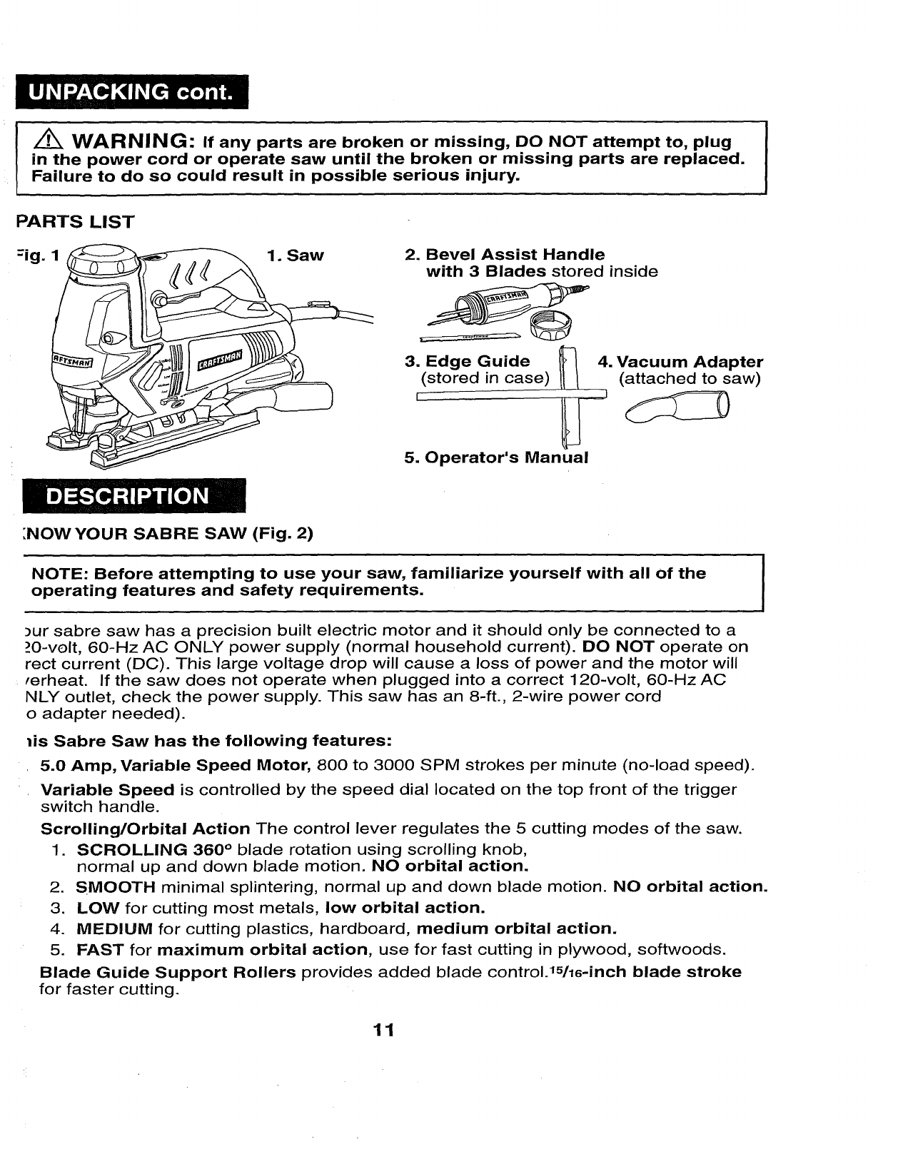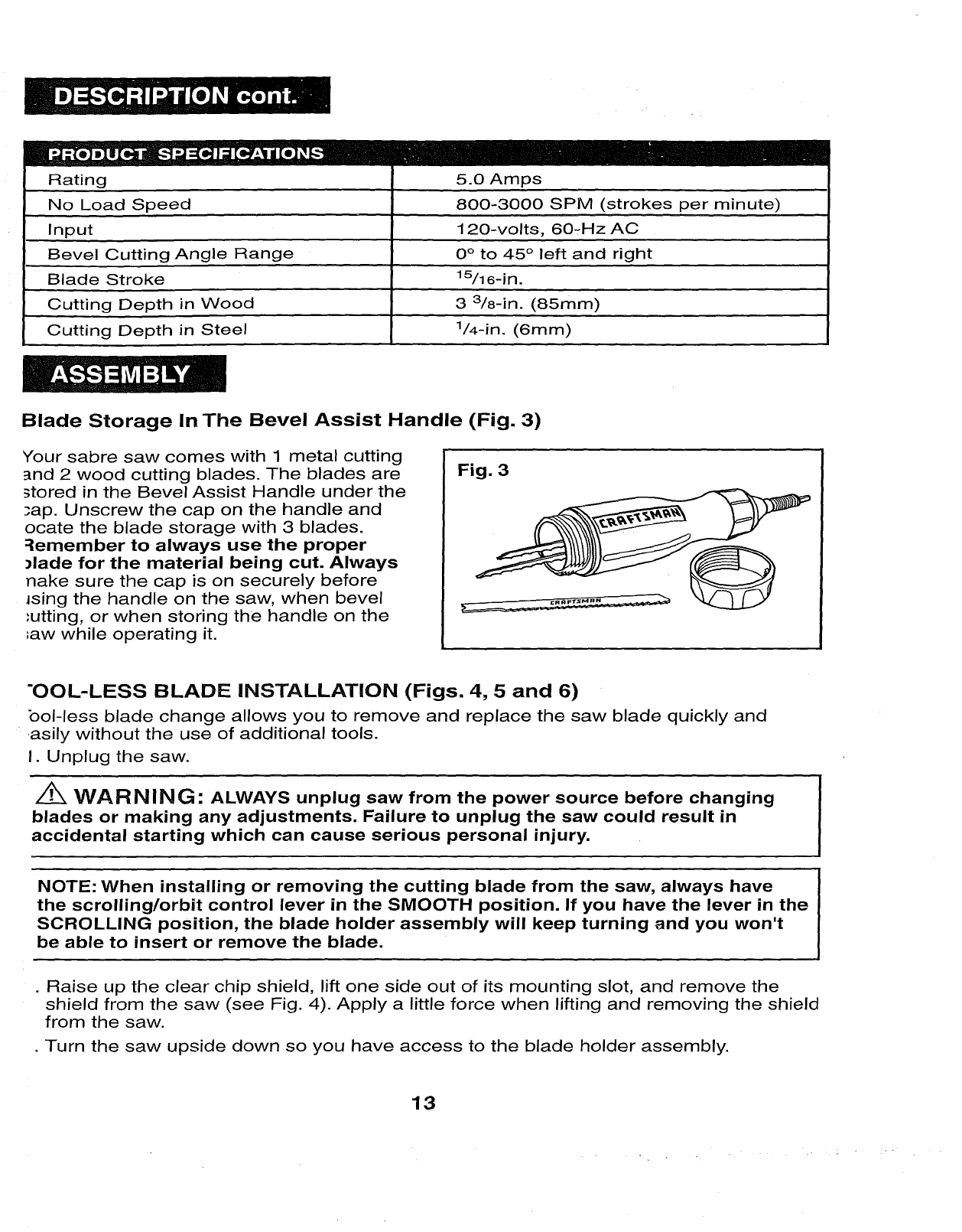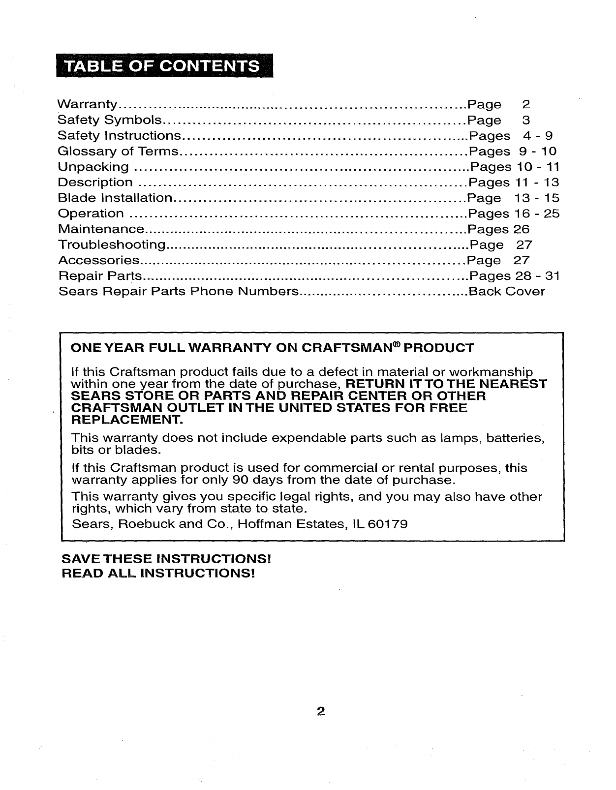 Craftsman 32017255 User Manual SCROLLING SABRE SAW Manuals And Guides 1006644L