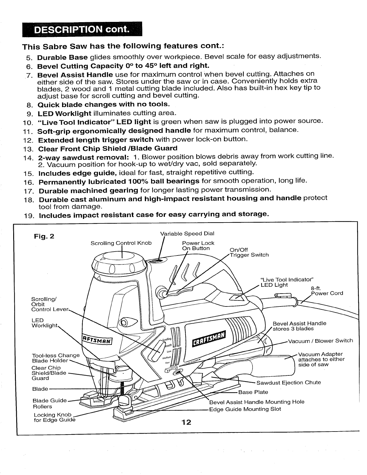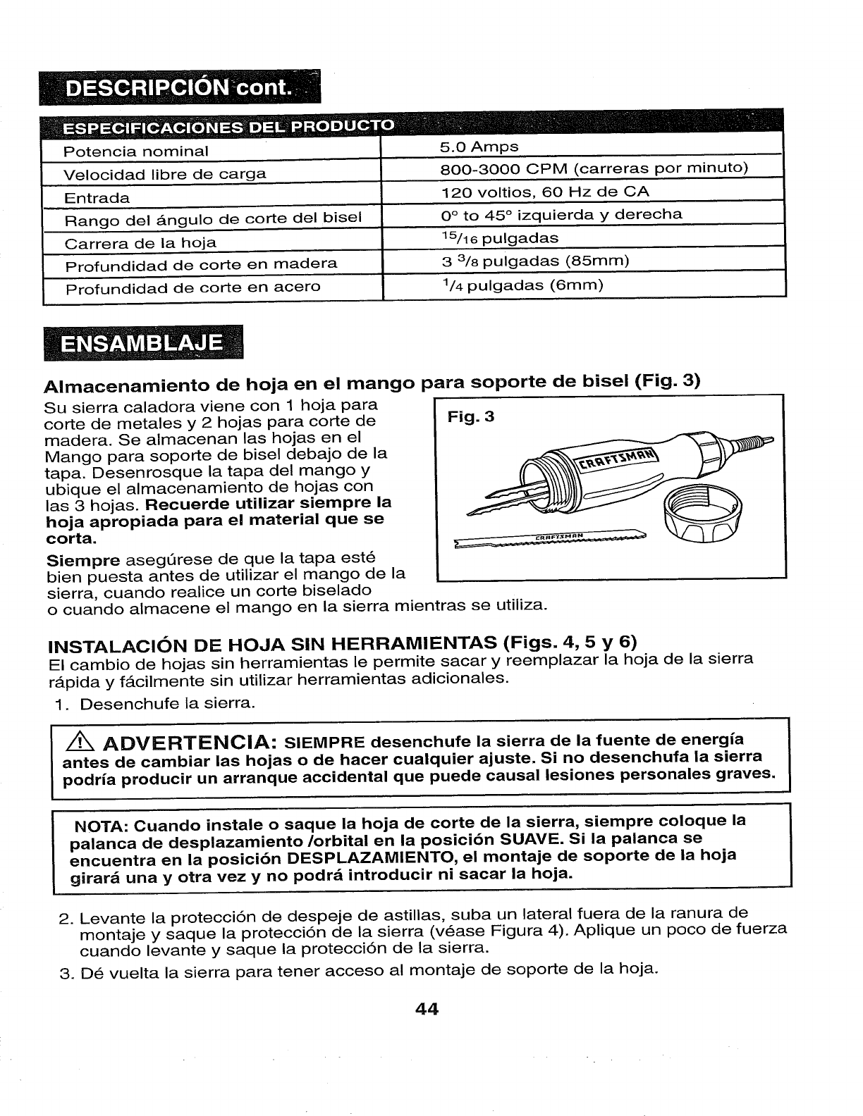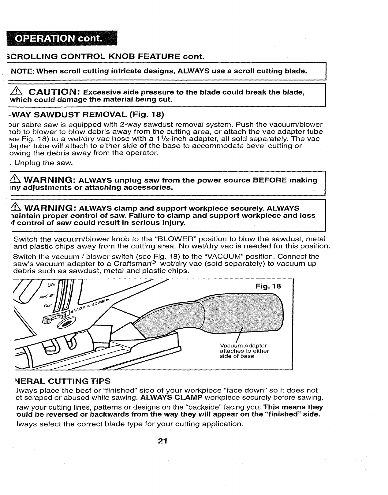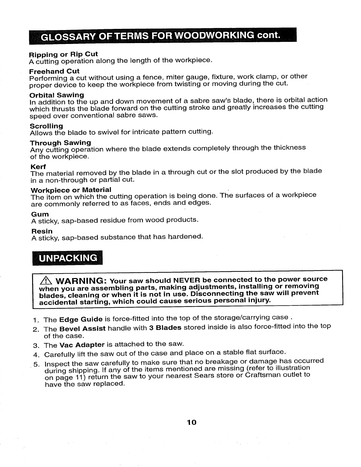 Craftsman 32017255 User Manual SCROLLING SABRE SAW Manuals And Guides 1006644L