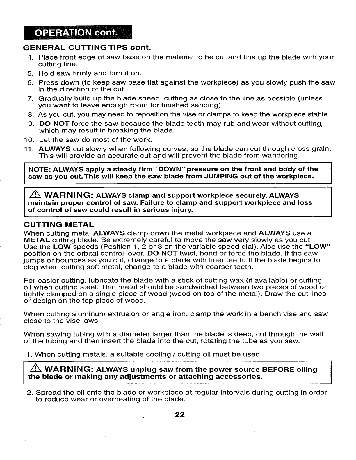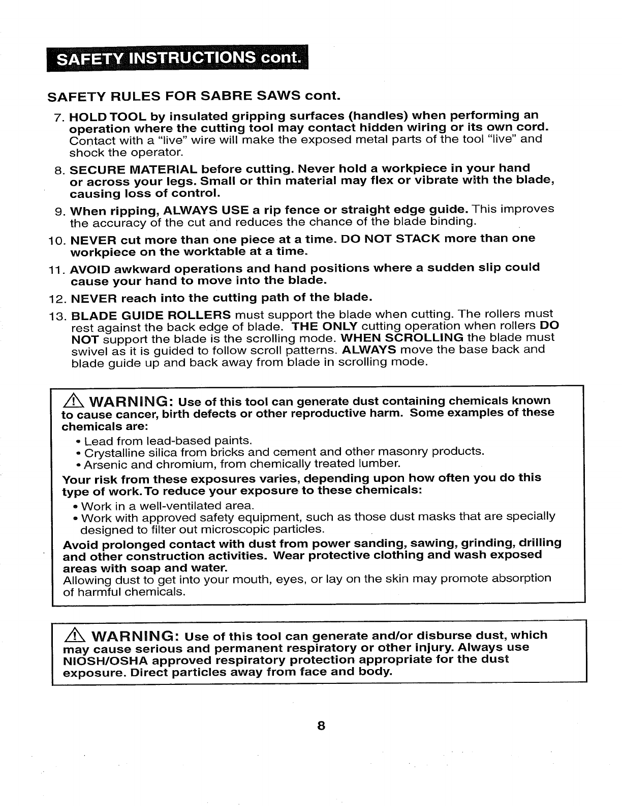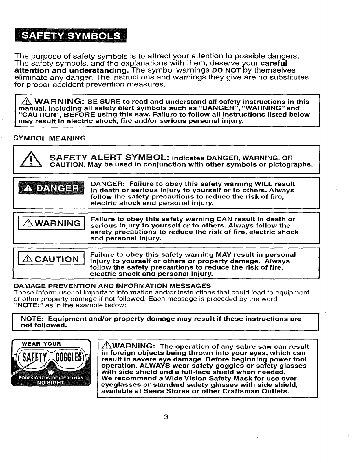 WEAR YOUR z_WARNING: The operation of any sabre saw can result