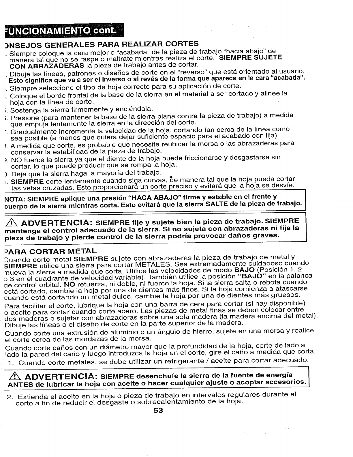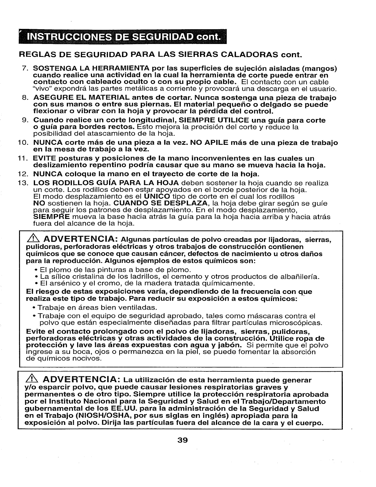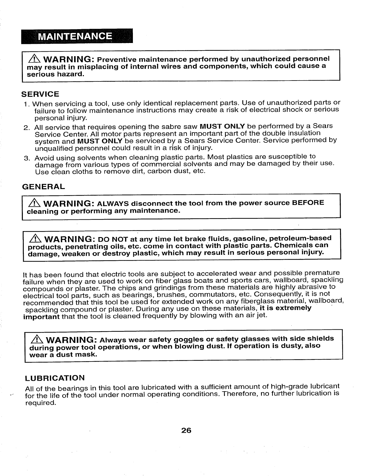 WEAR YOUR z_WARNING: The operation of any sabre saw can result