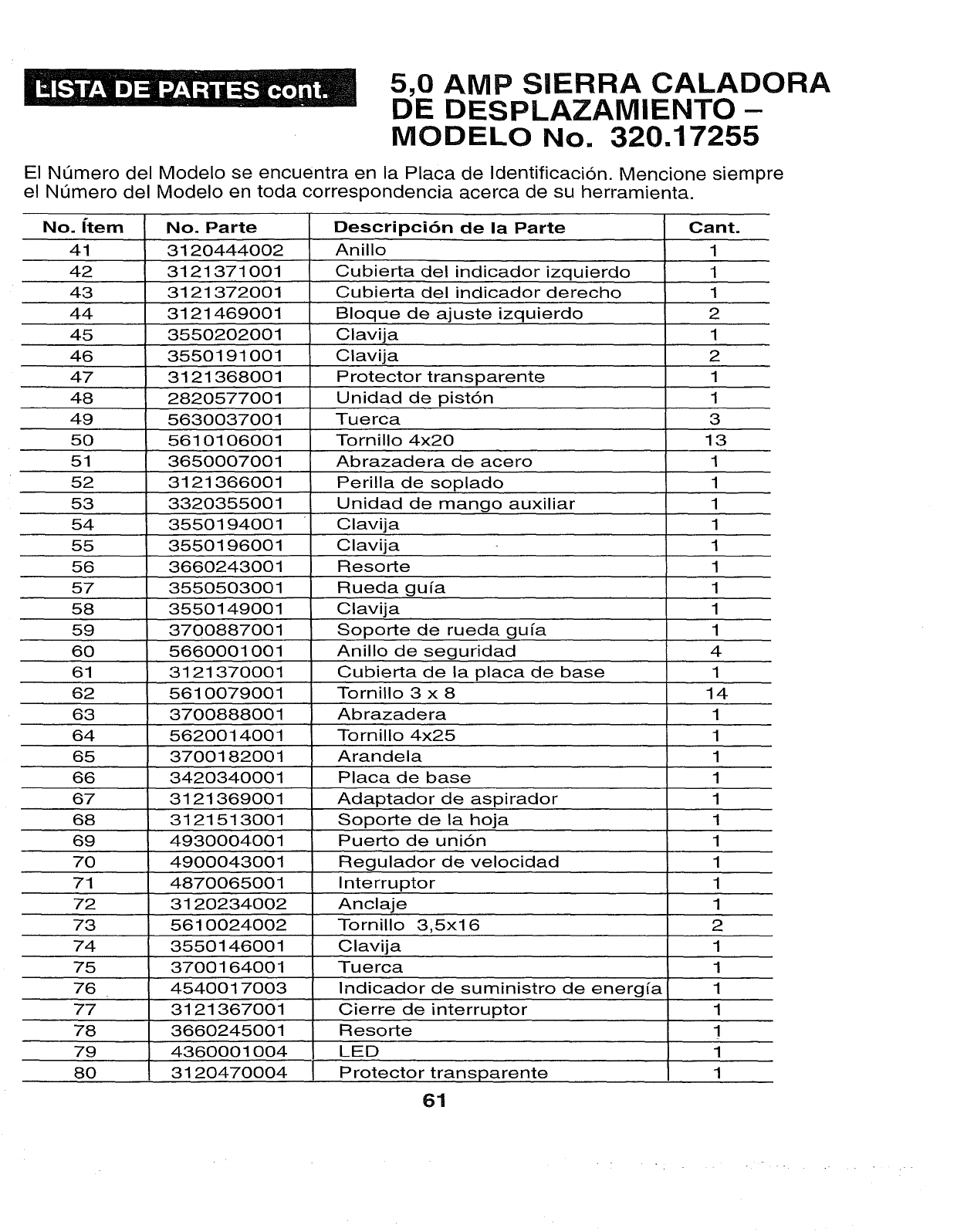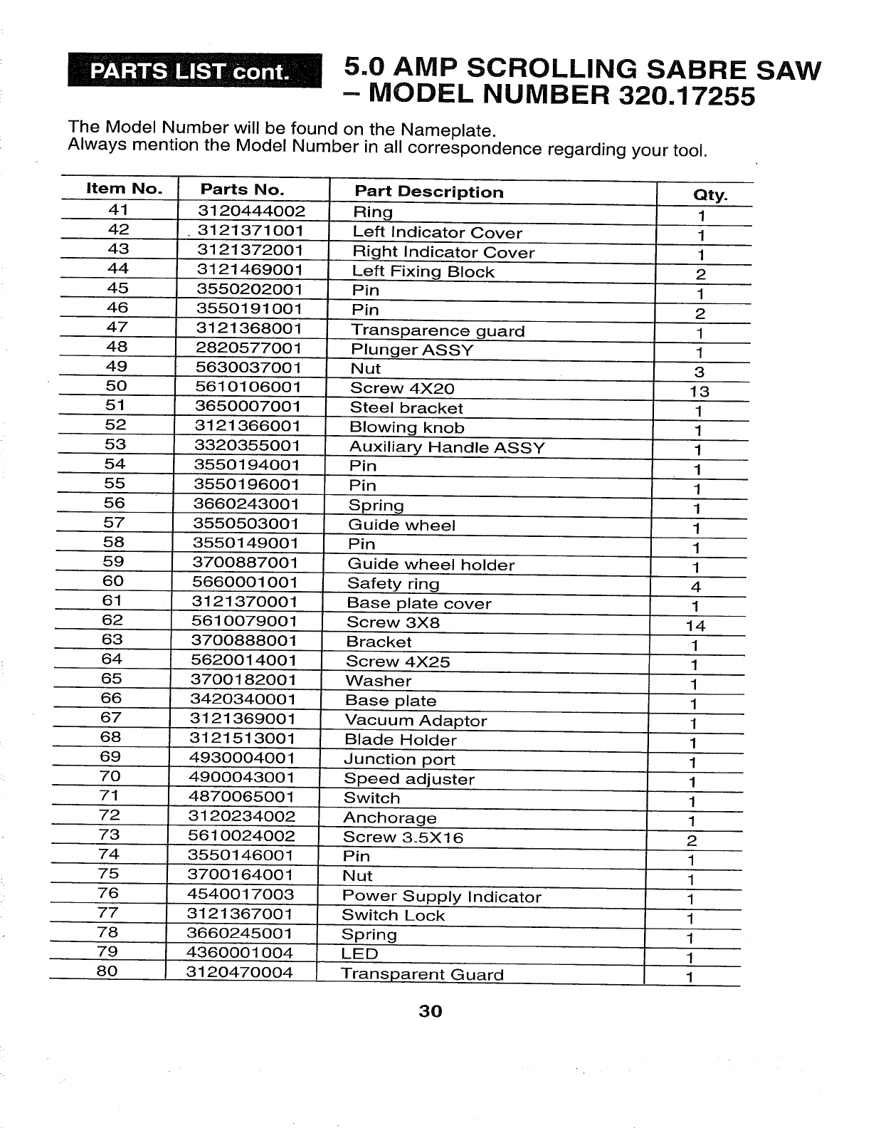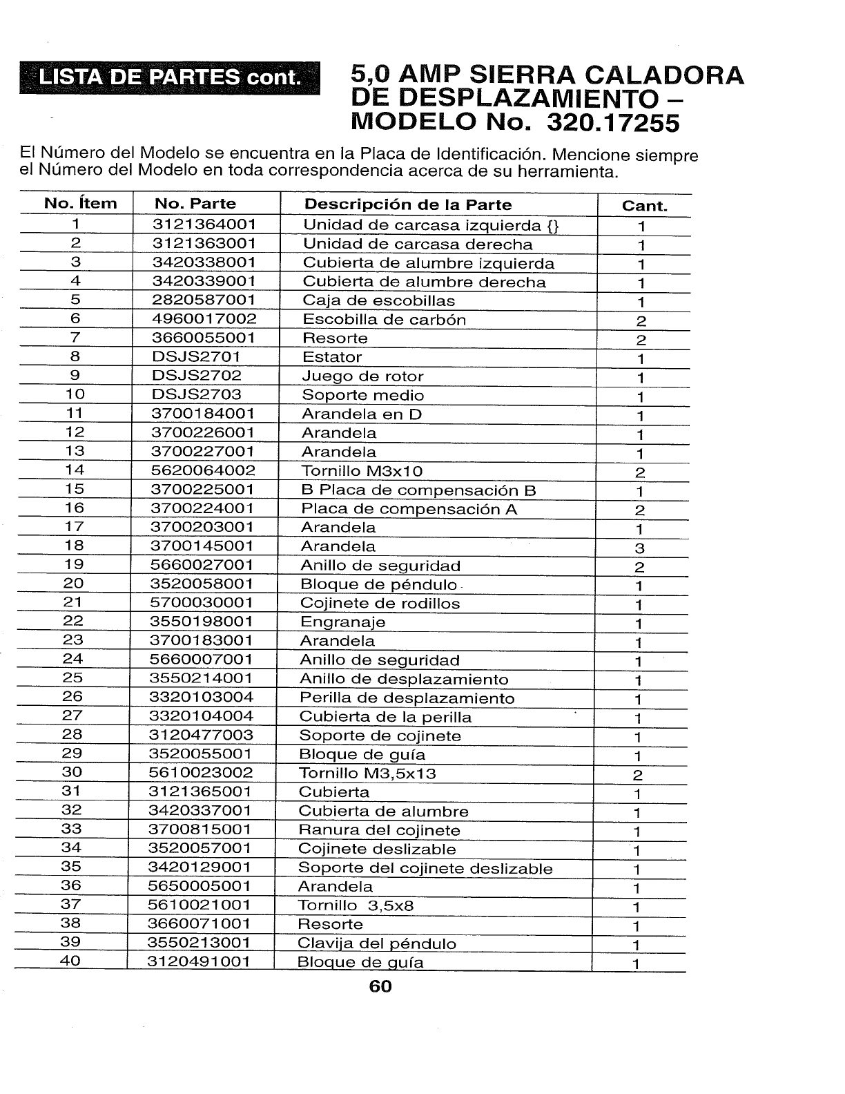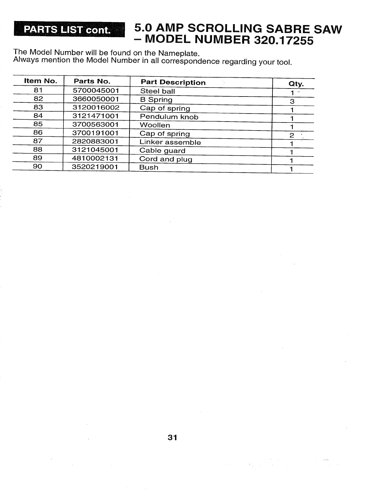 User Manual: Craftsman 32017255 32017255 CRAFTSMAN SCROLLING SABRE SAW - Manuals and Guides View the owners manual for your CRAFTSMAN SCROLLING SABRE SAW #32017255. Home:Tool Parts:Craftsman Parts:Craftsman SCROLLING SABRE SAW Manual