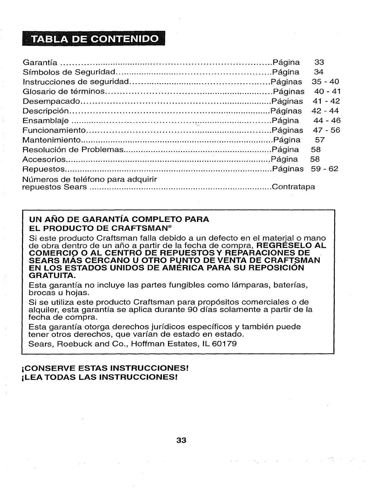 ONE YEAR FULL WARRANTY ON CRAFTSMAN ® PRODUCT