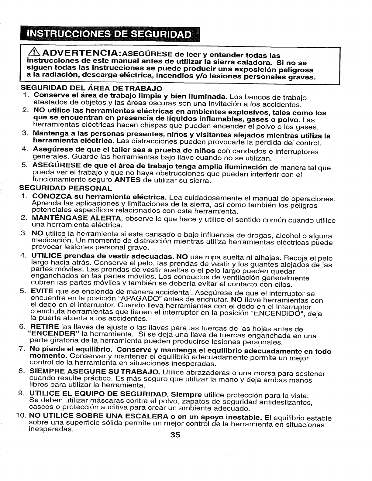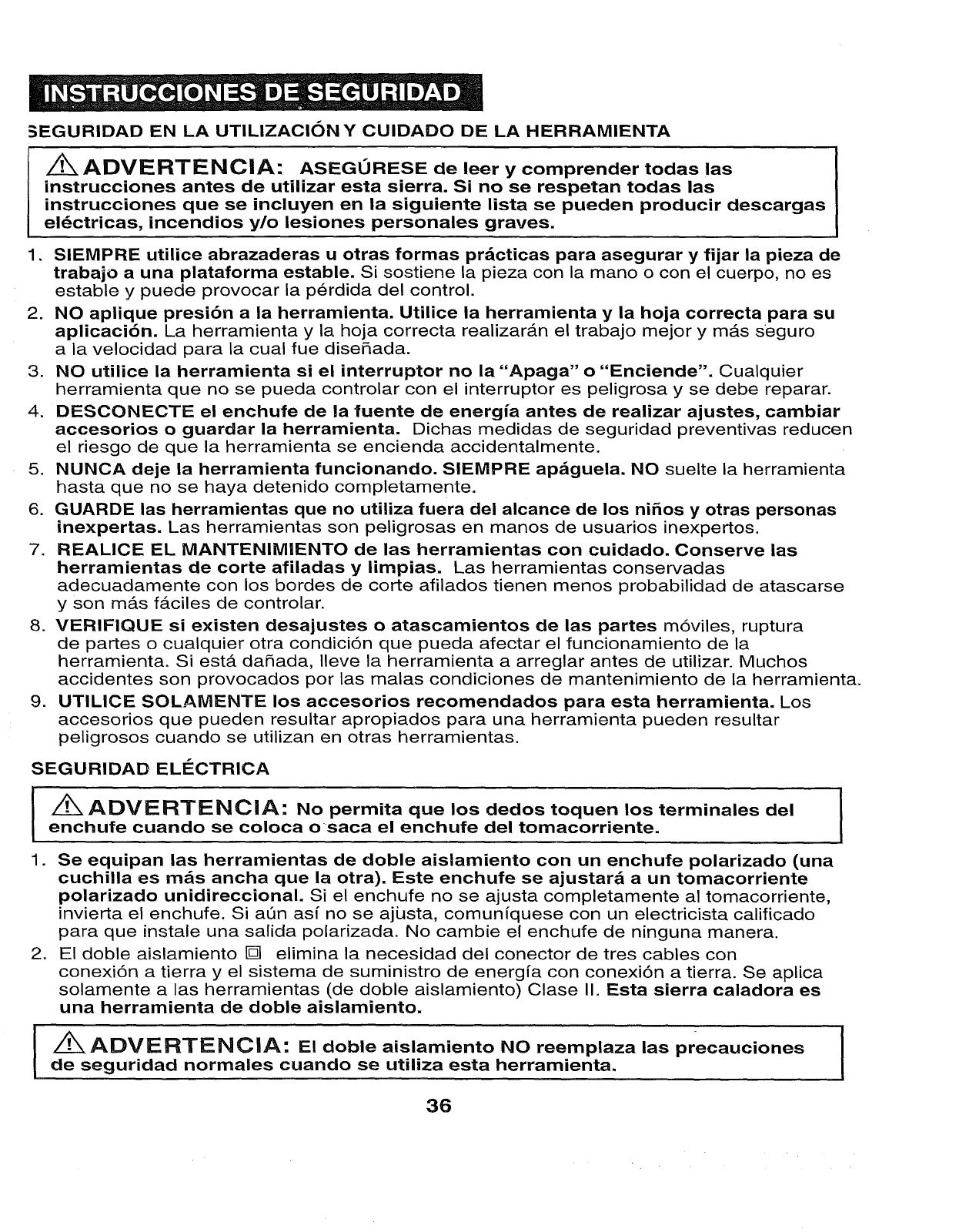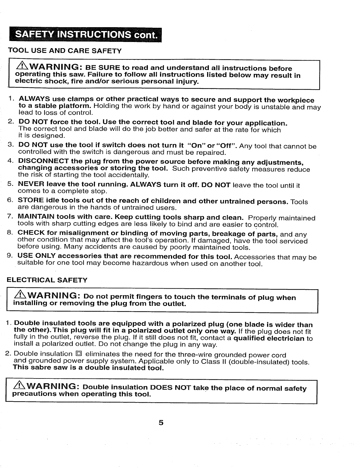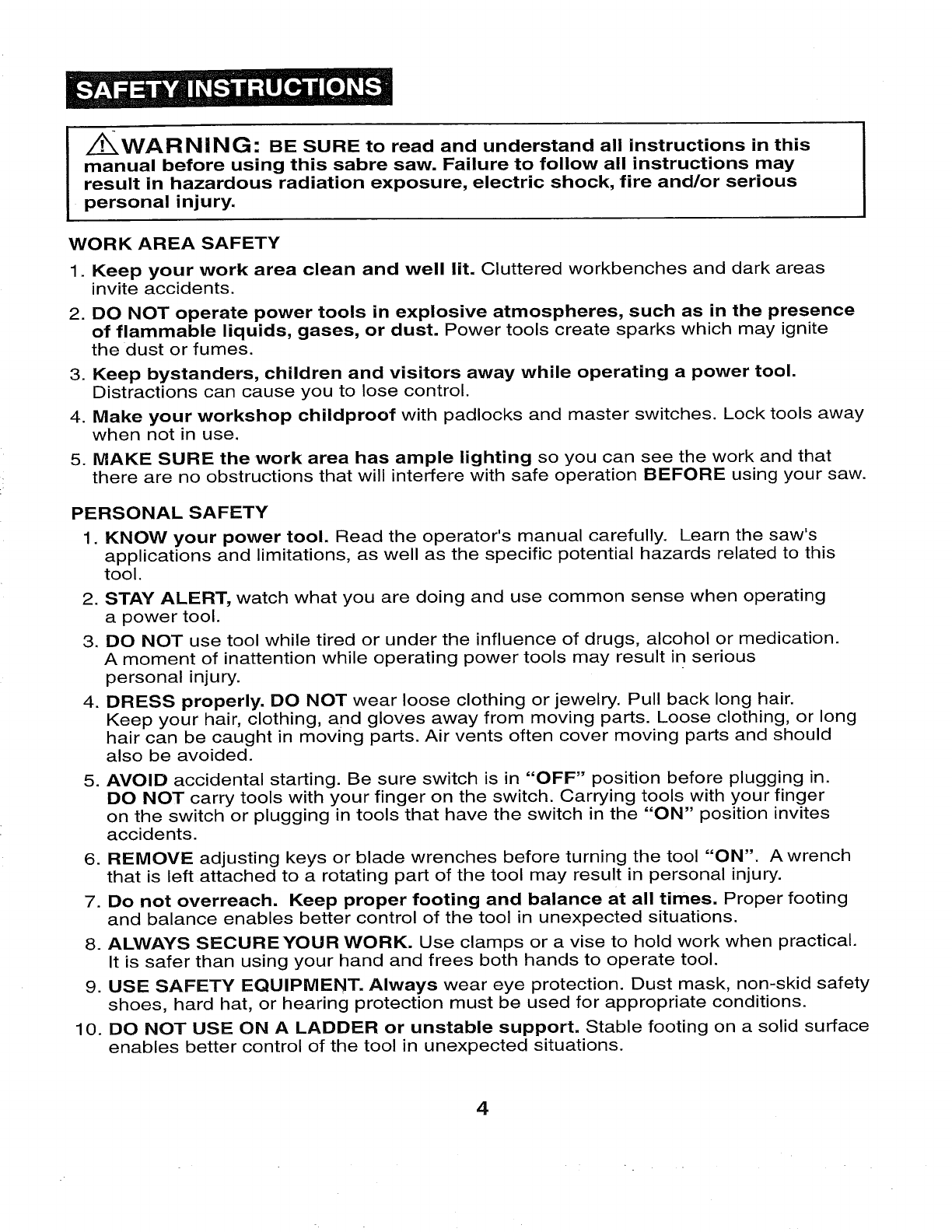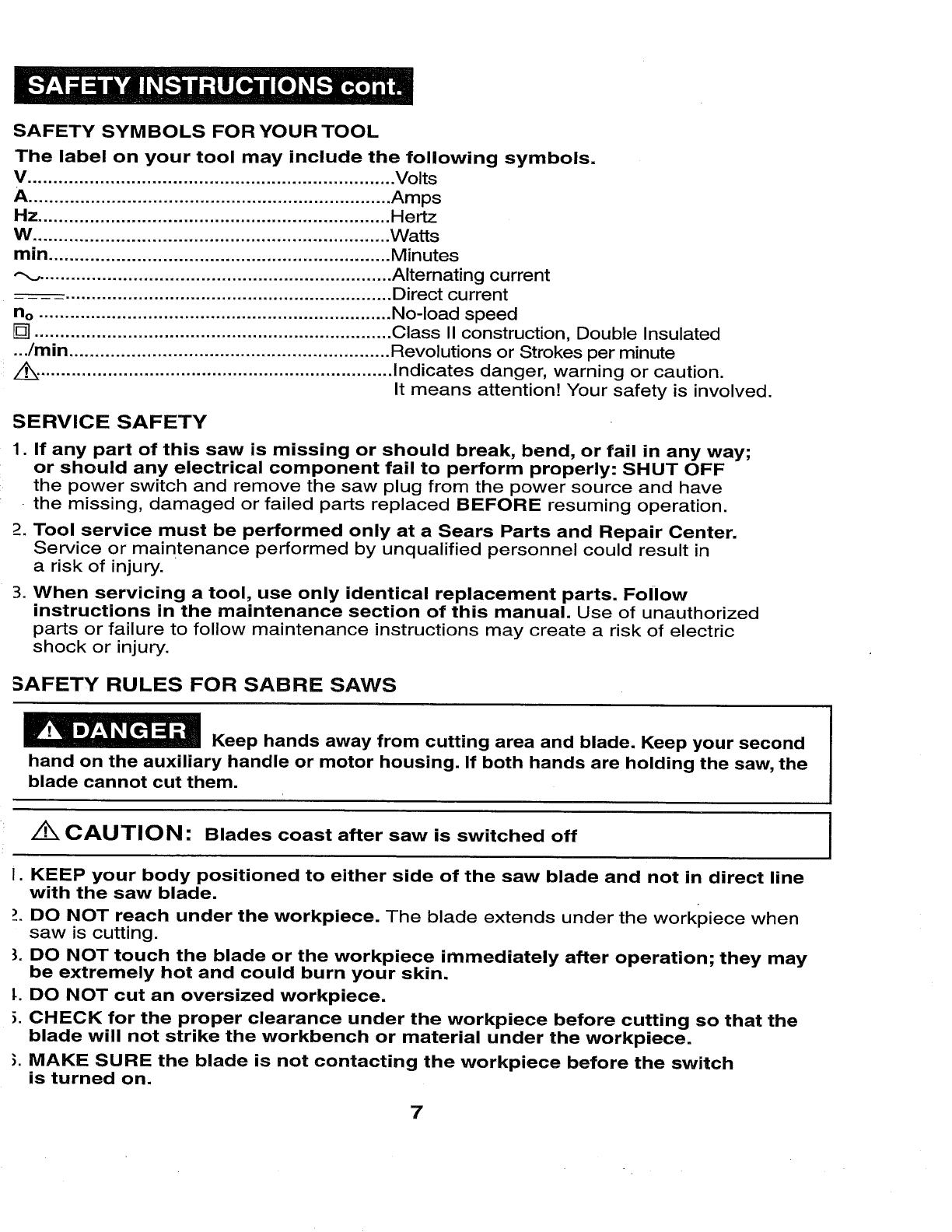 manual before using this sabre saw. Failure to follow all instructions may