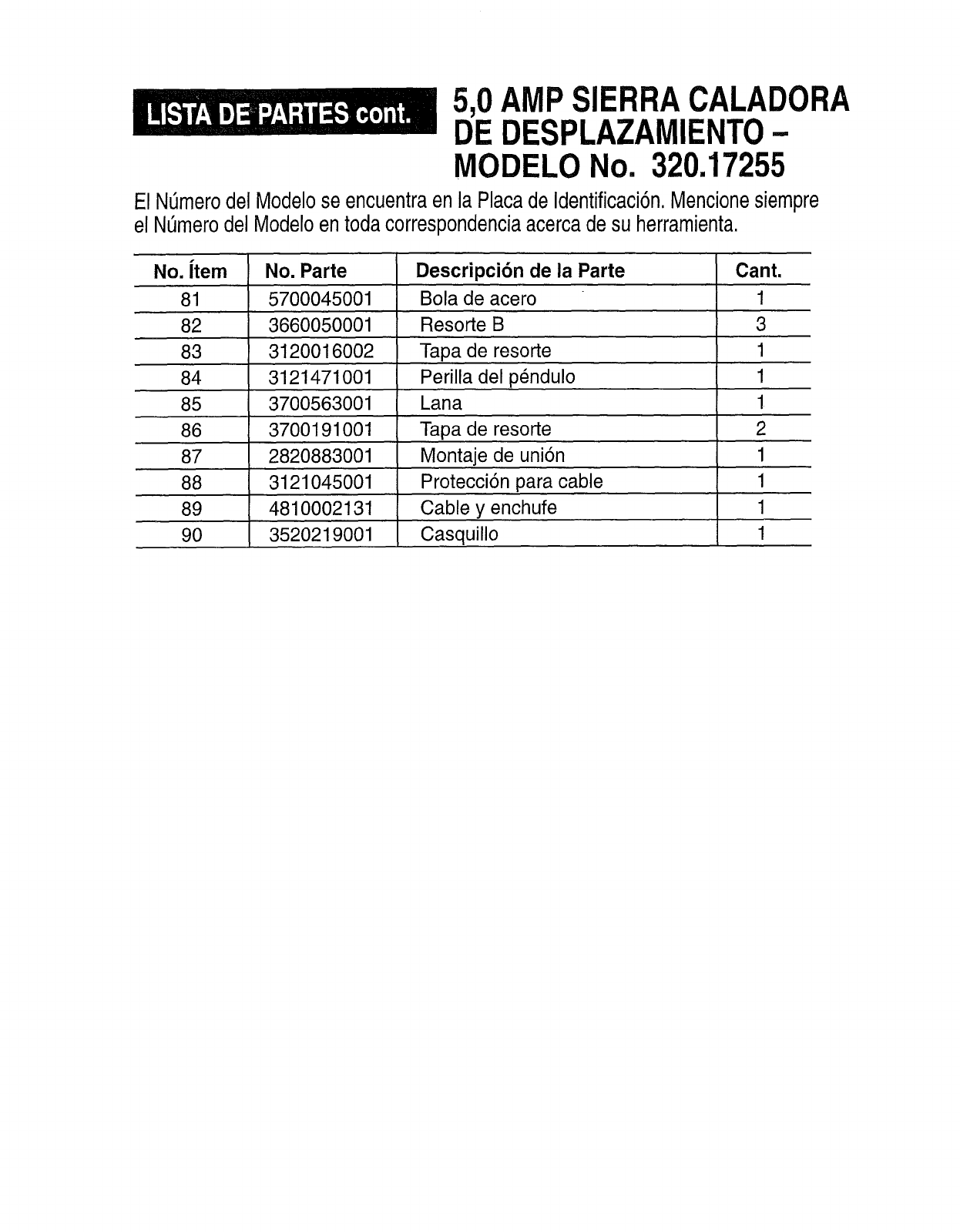 El NtJmerodel Modelose encuentraen la Placade Identificaci6n.Mencionesiempre