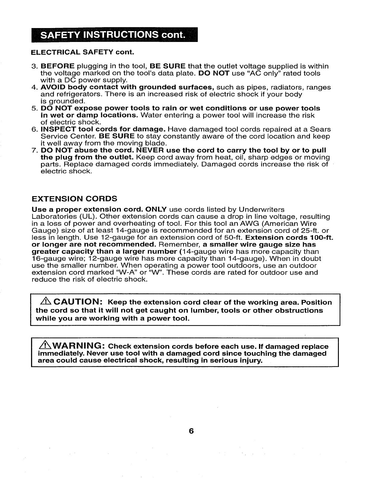 "CAUTION", BEFORE using this saw. Failure to follow all instructions listed below
