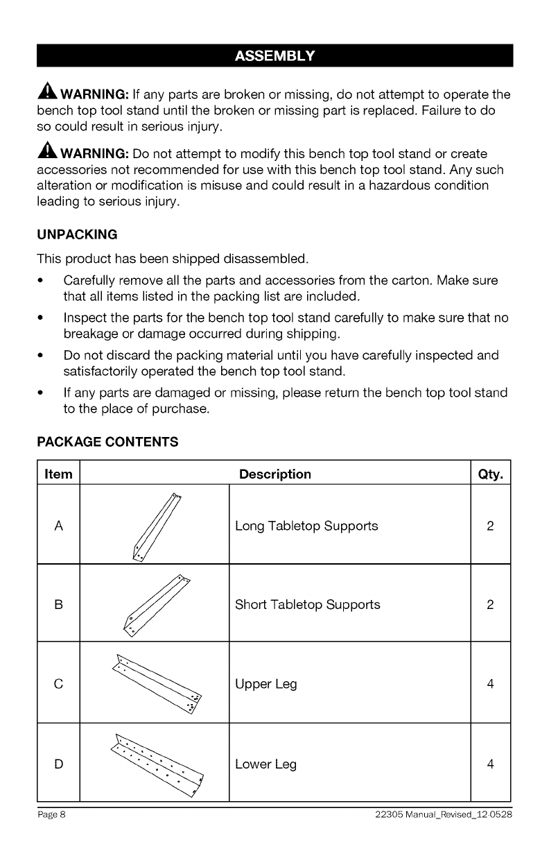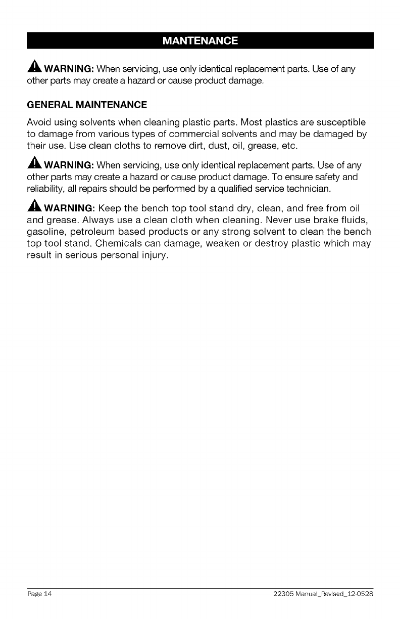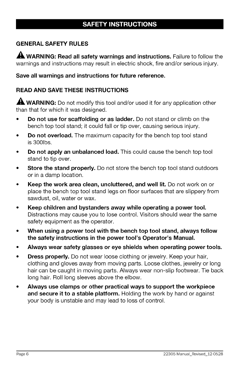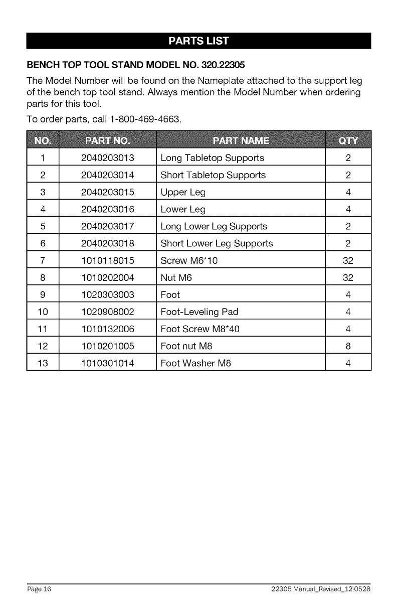 User Manual: Craftsman 32022305 32022305 CRAFTSMAN BENCH TOP TOOL STAND - Manuals and Guides View the owners manual for your CRAFTSMAN BENCH TOP TOOL STAND #32022305. Home:Tool Parts:Craftsman Parts:Craftsman BENCH TOP TOOL STAND Manual