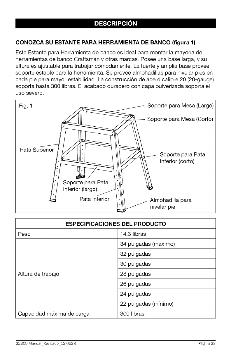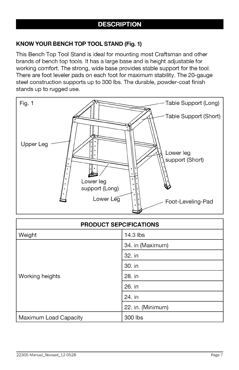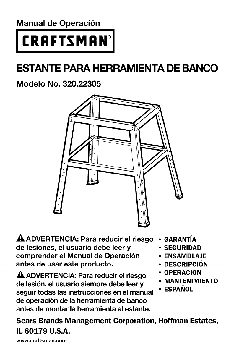 Craftsman 32022305 1301066L User Manual BENCH TOP TOOL STAND Manuals And Guides