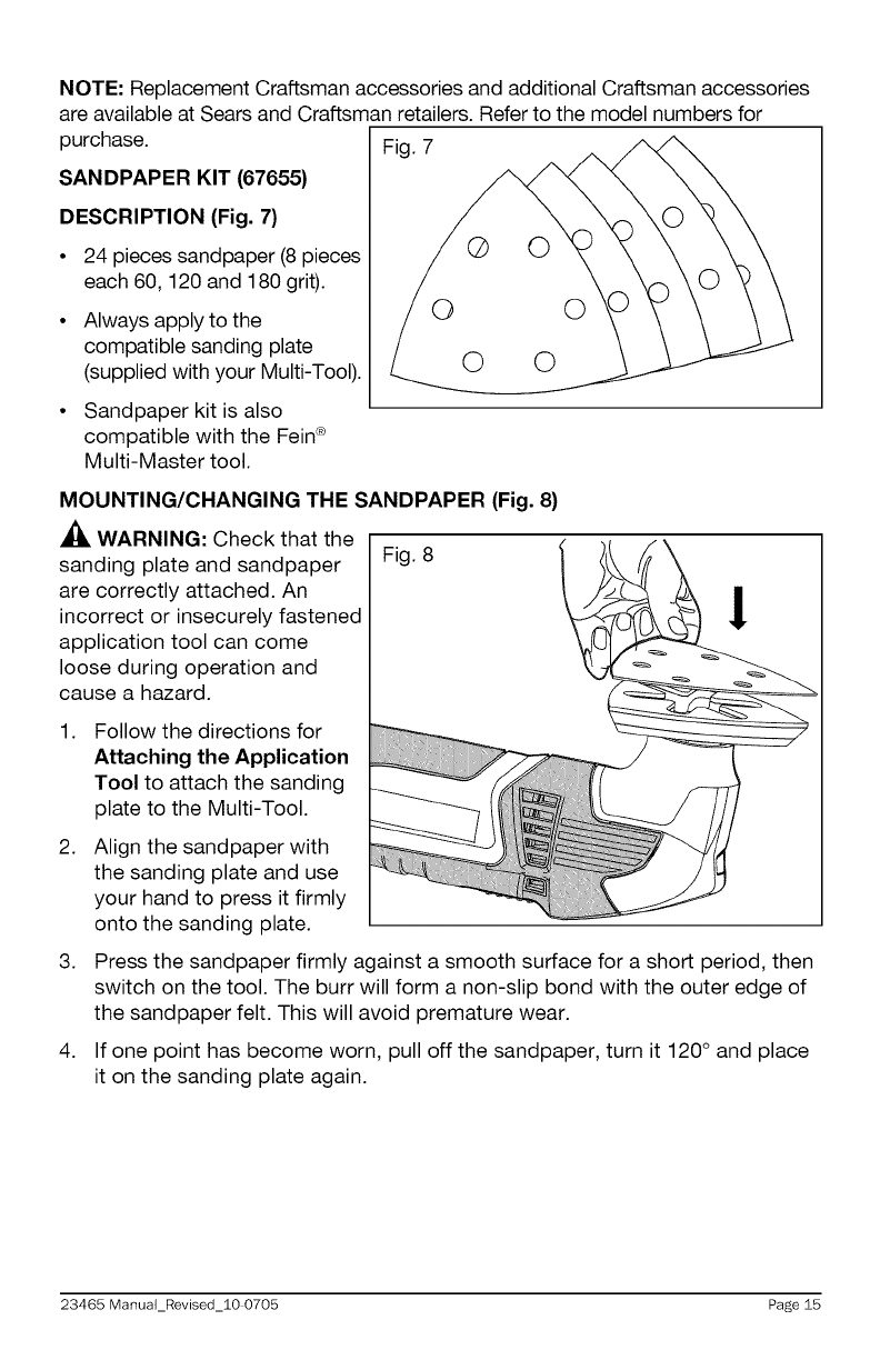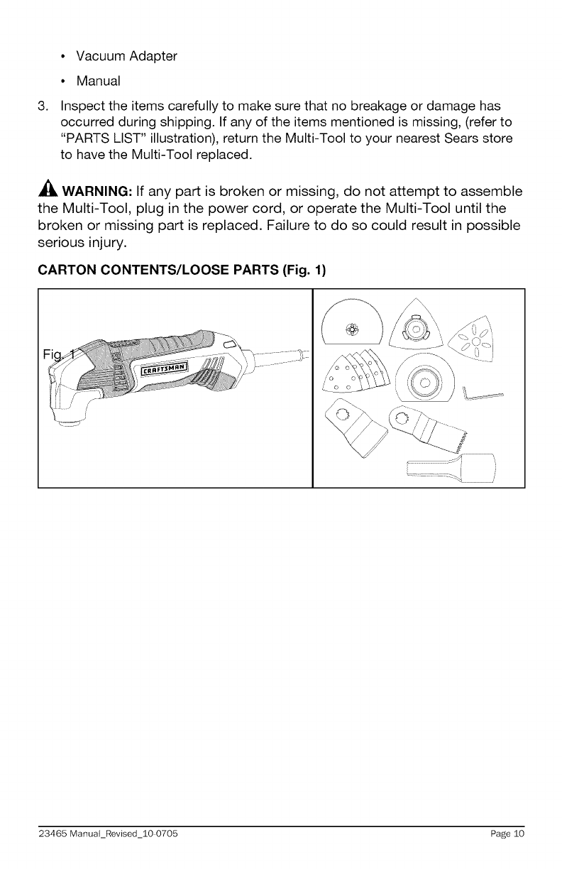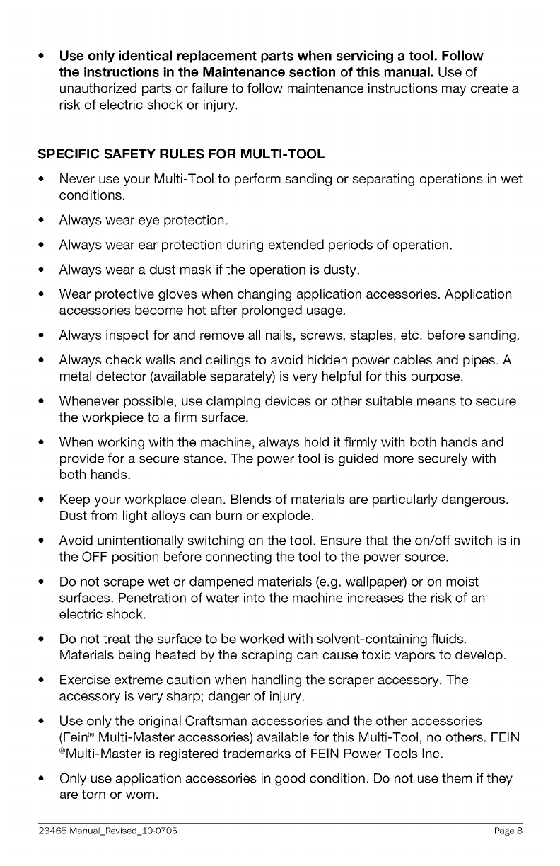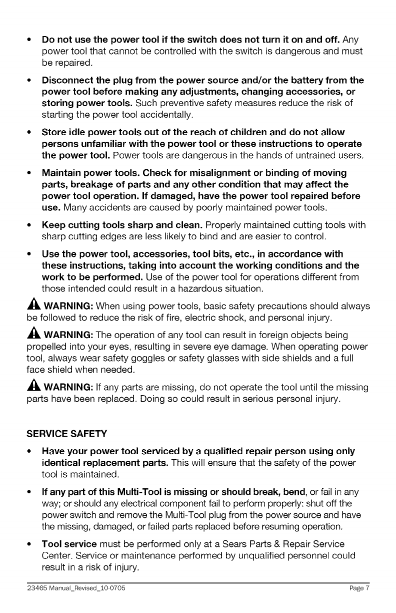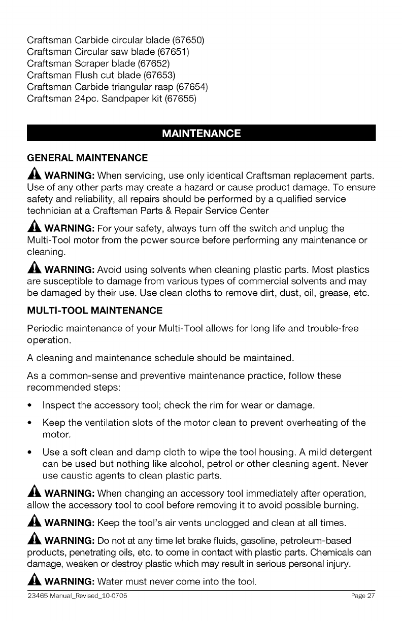 User Manual: Craftsman 32023465 32023465 CRAFTSMAN MULTI-TOOL - Manuals and Guides View the owners manual for your CRAFTSMAN MULTI-TOOL #32023465. Home:Tool Parts:Craftsman Parts:Craftsman MULTI-TOOL Manual
