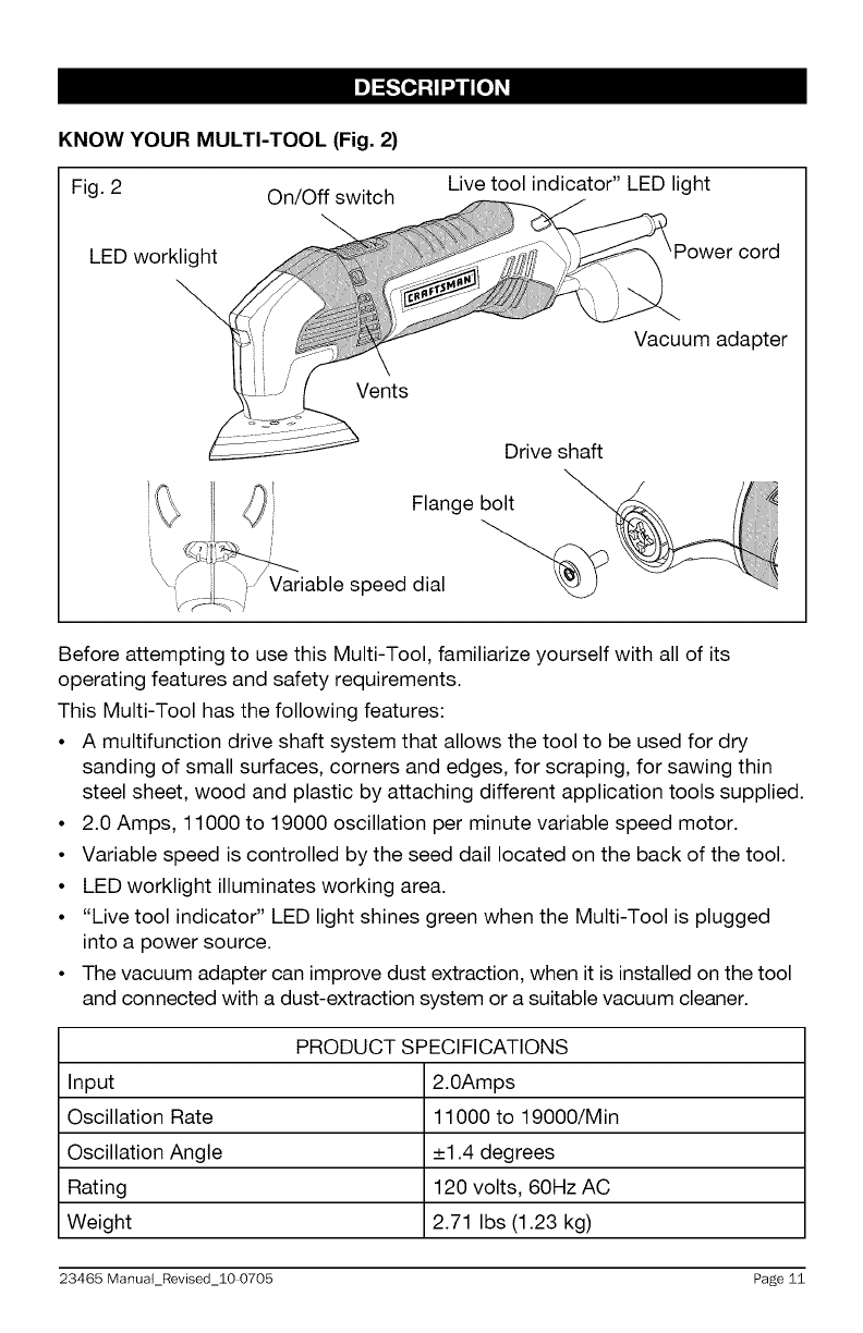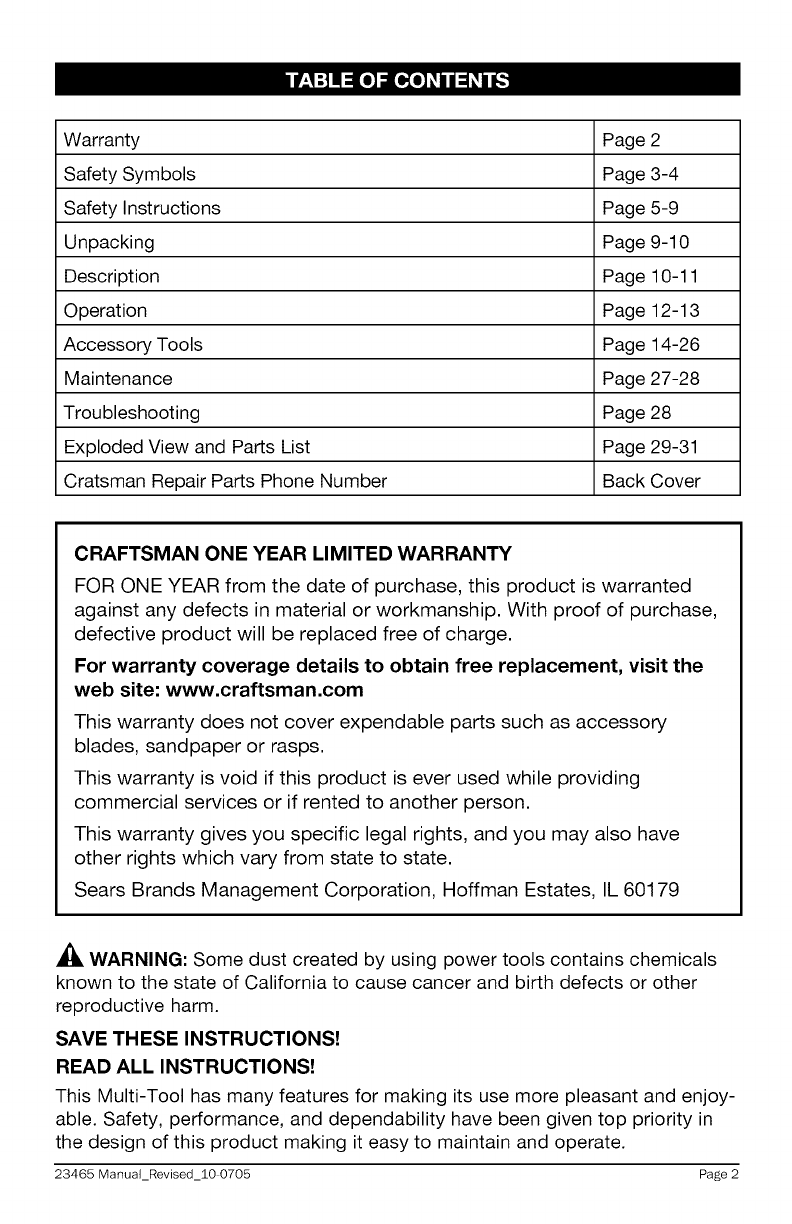 Craftsman 32023465 1101211L User Manual MULTI TOOL Manuals And Guides