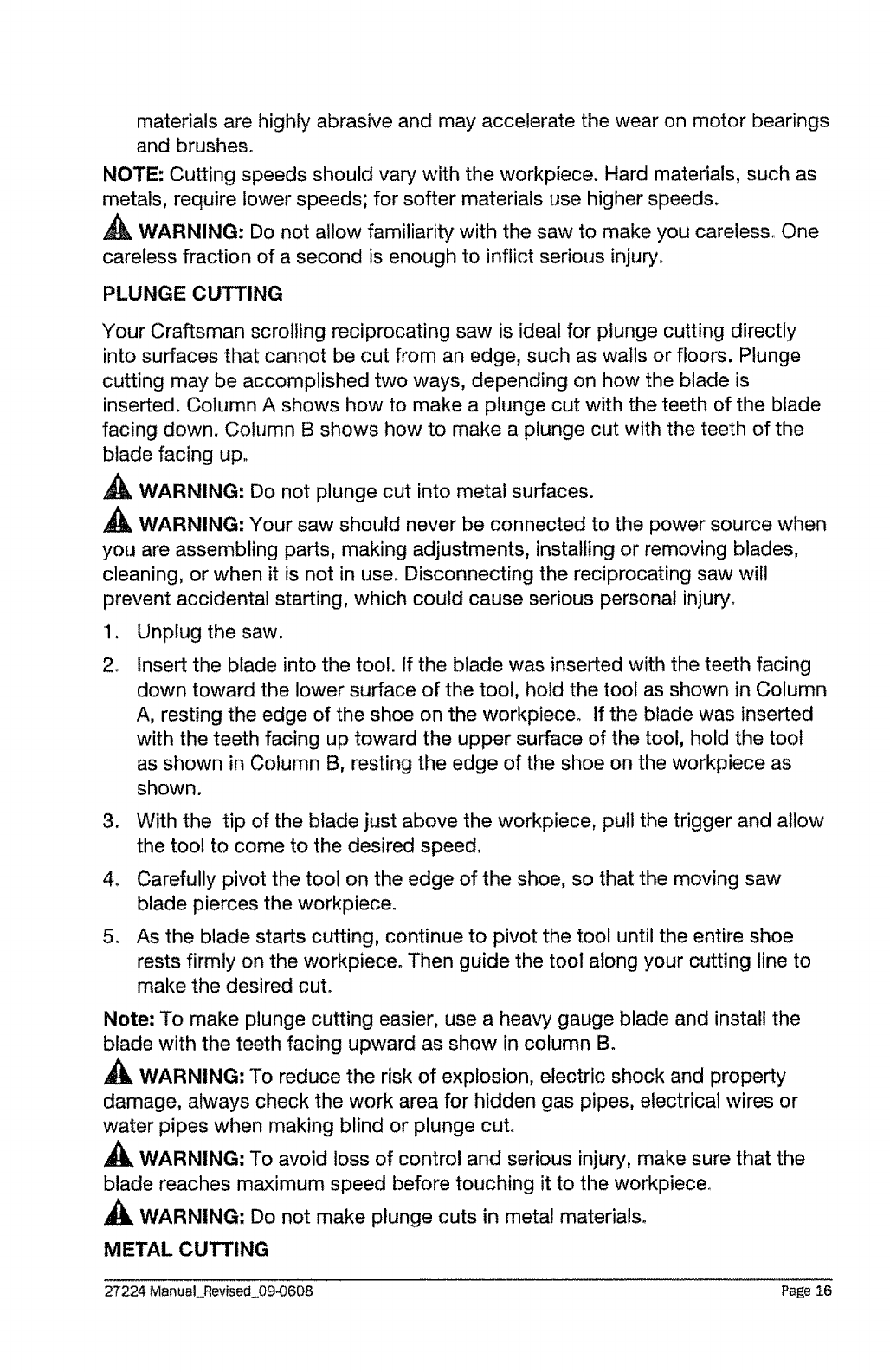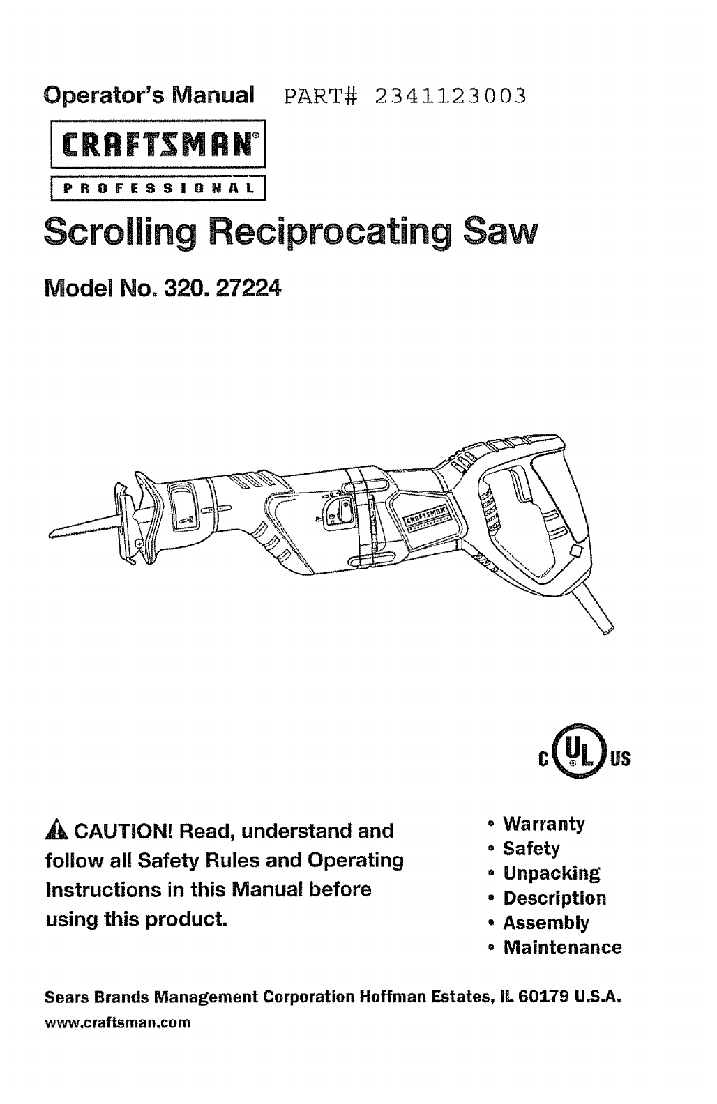 CRAFTSMAN Saw Reciprocating Manual L1003095 CRAFTSMAN Saw Reciprocating Owner's Manual, CRAFTSMAN Saw Reciprocating installation guides