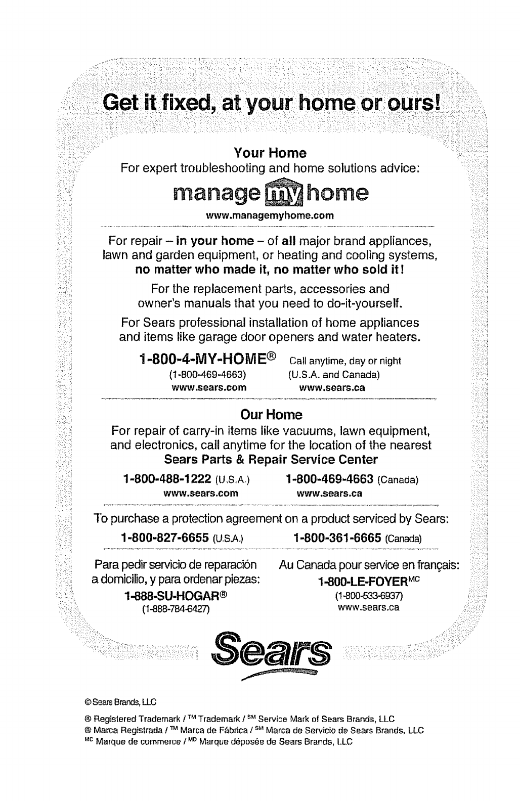 @Marca Registrada IT_ Marca de F&brica /sMMarea de Servtcio de Sears Brands, LLC
