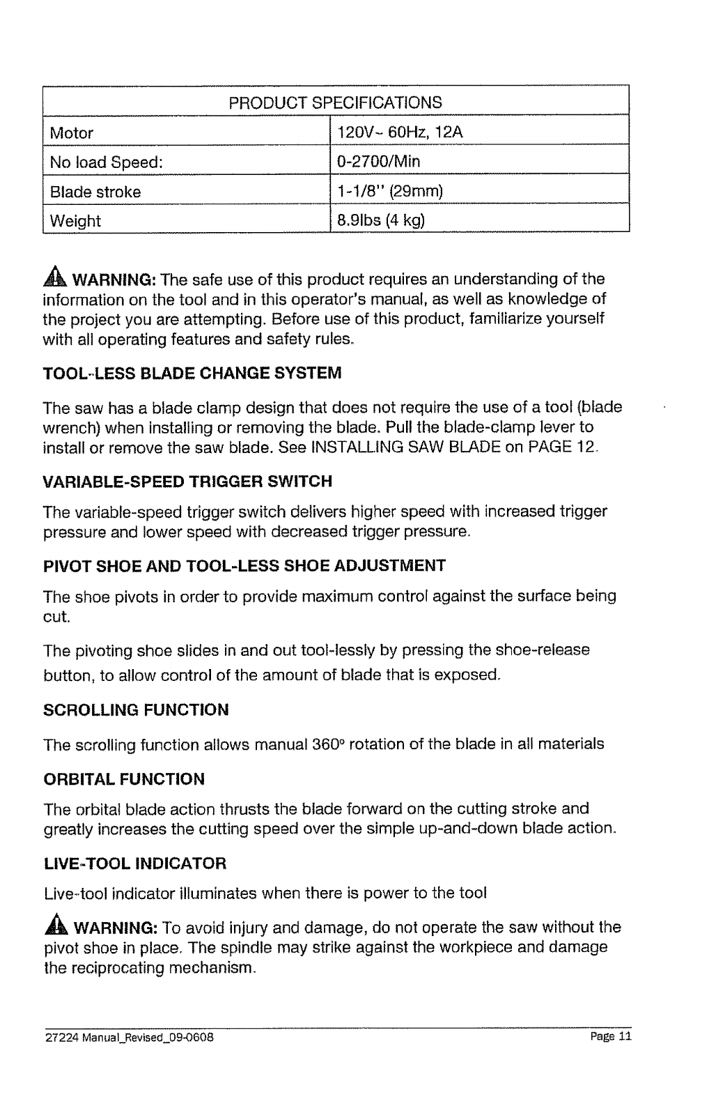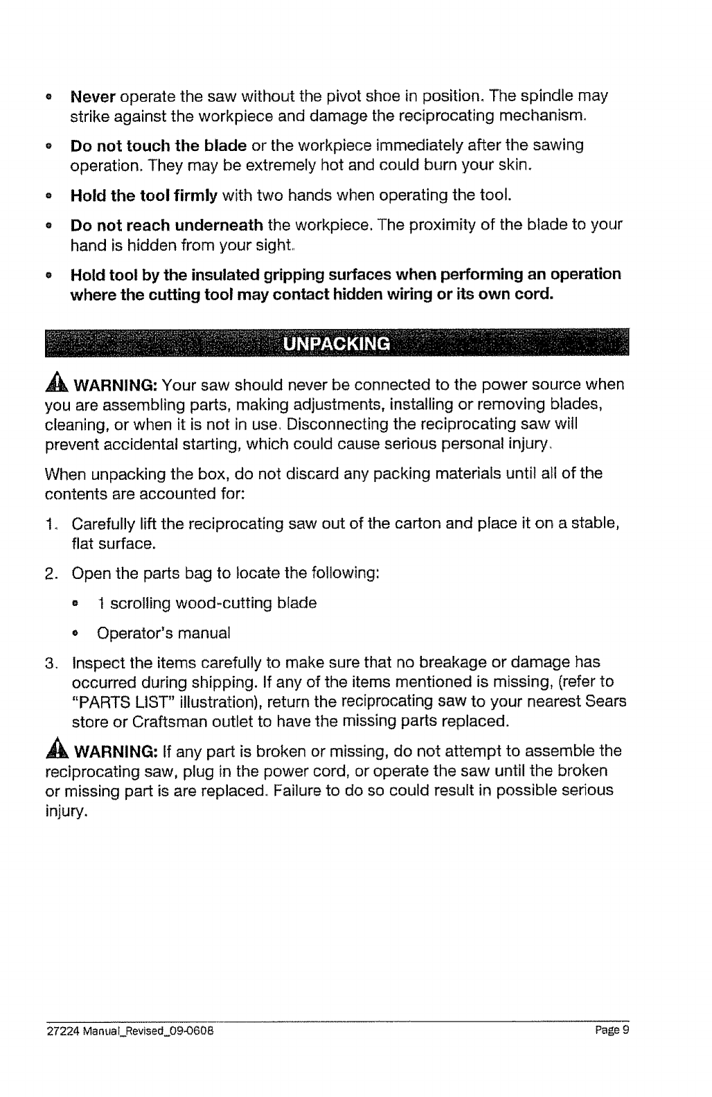 Craftsman 32027224 User Manual SAW Manuals And Guides L1003095