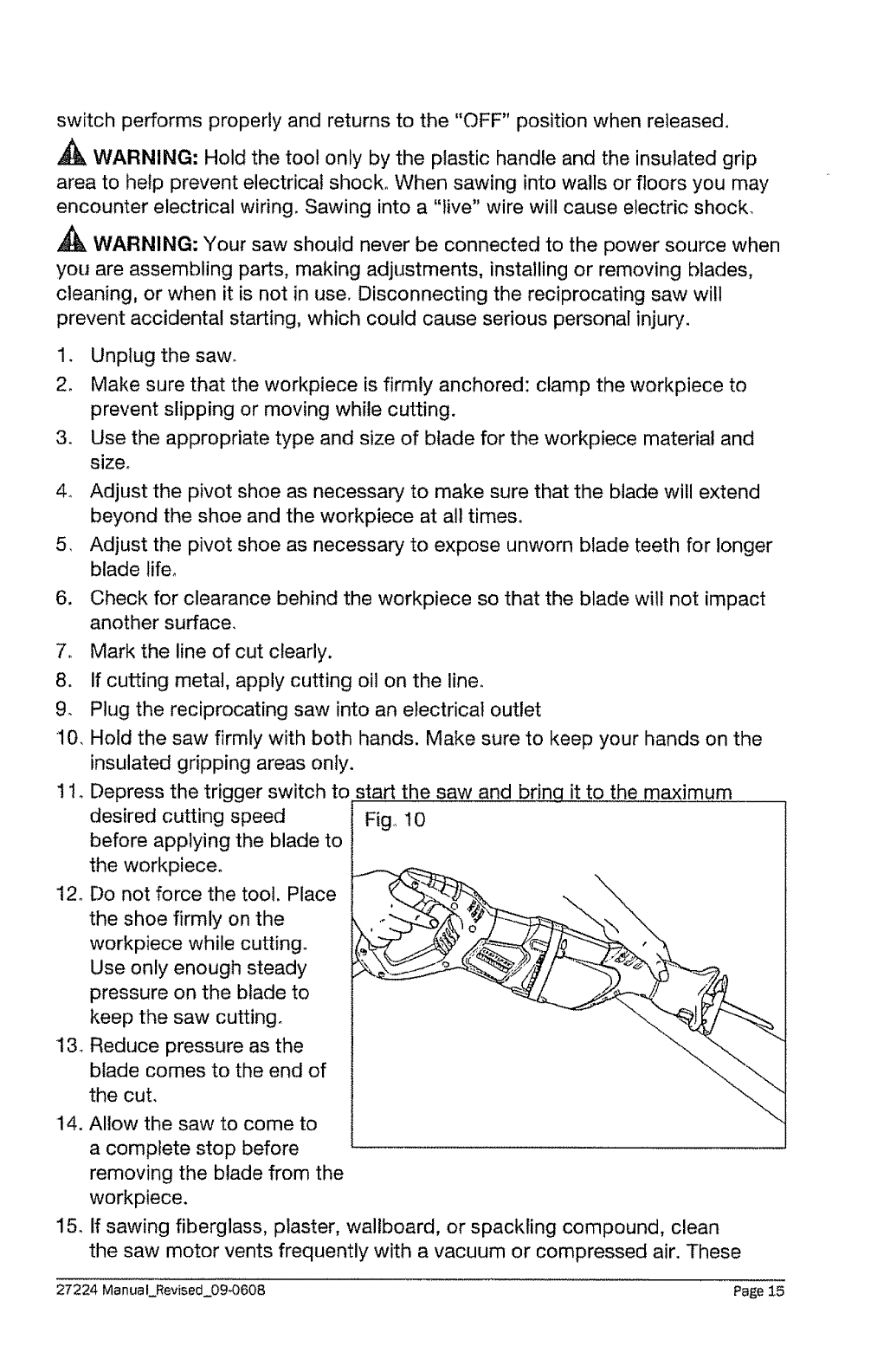 before using the reciprocating saw. Failure to follow all instructions may result in