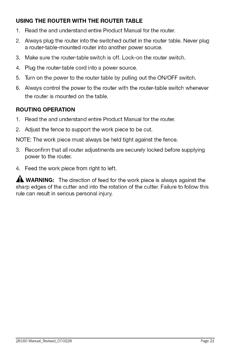 Craftsman 32028160 User Manual ROUTER TABLE Manuals And Guides L0912331