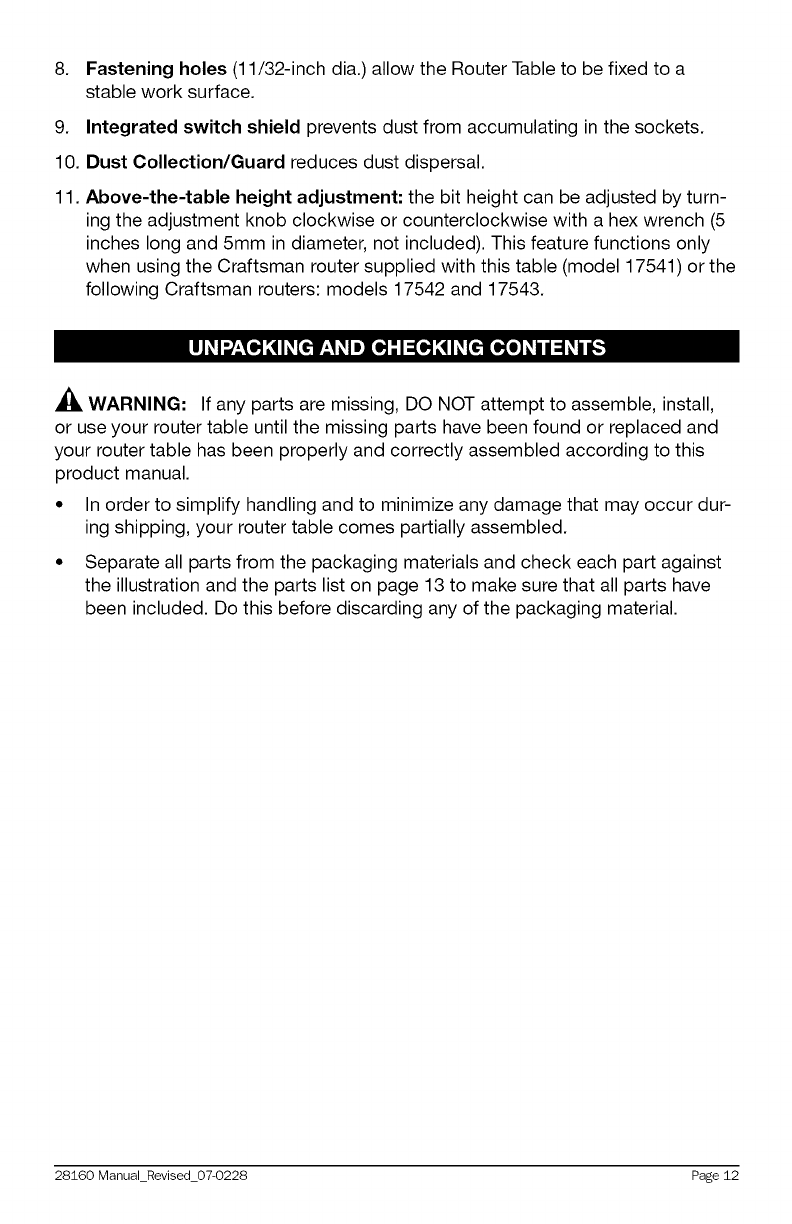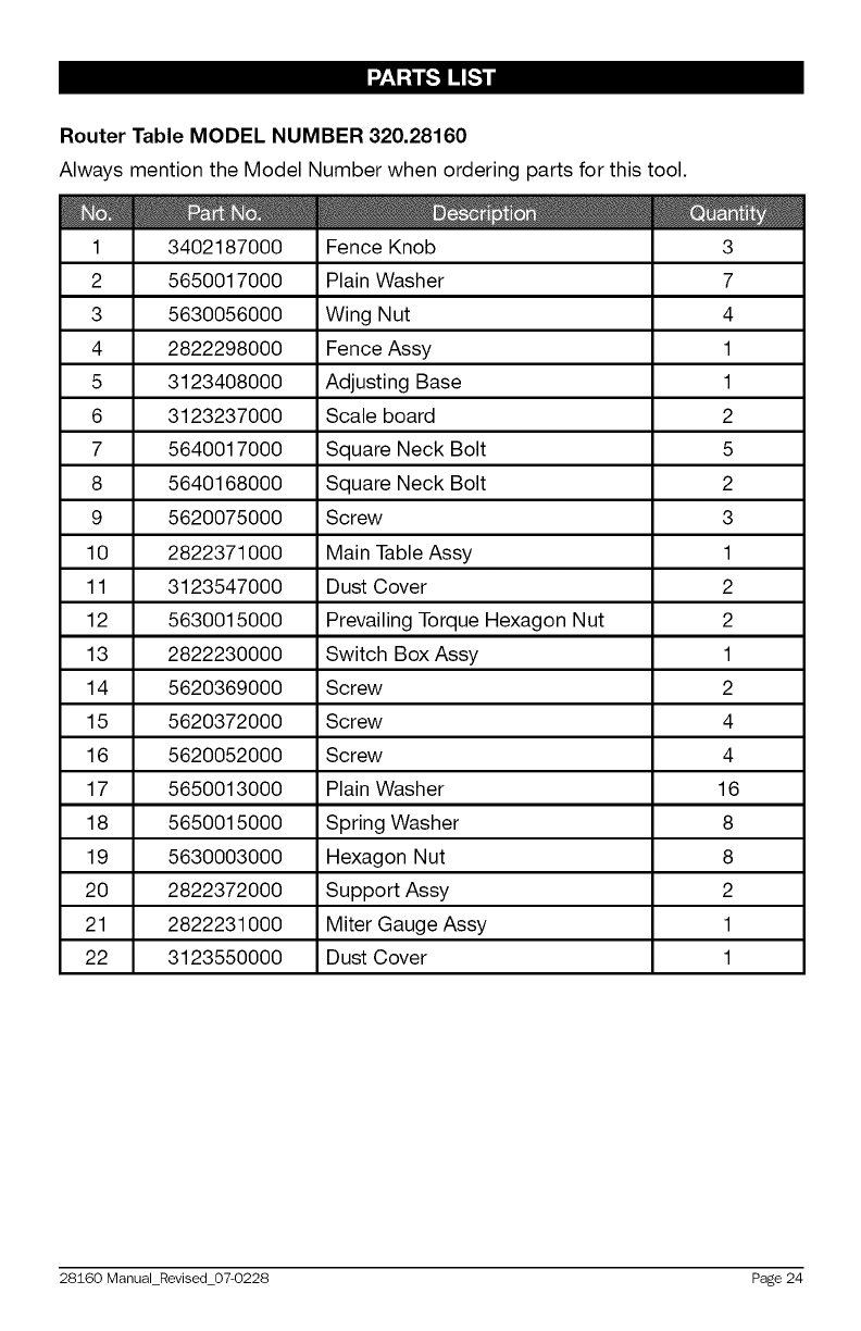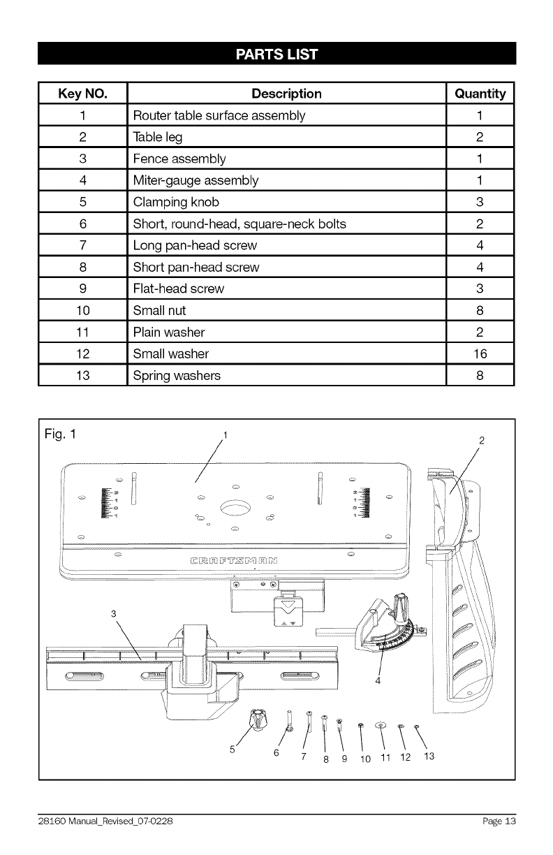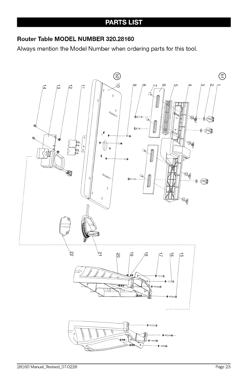 User Manual: Craftsman 32028160 32028160 CRAFTSMAN ROUTER TABLE - Manuals and Guides View the owners manual for your CRAFTSMAN ROUTER TABLE #32028160. Home:Tool Parts:Craftsman Parts:Craftsman ROUTER TABLE Manual