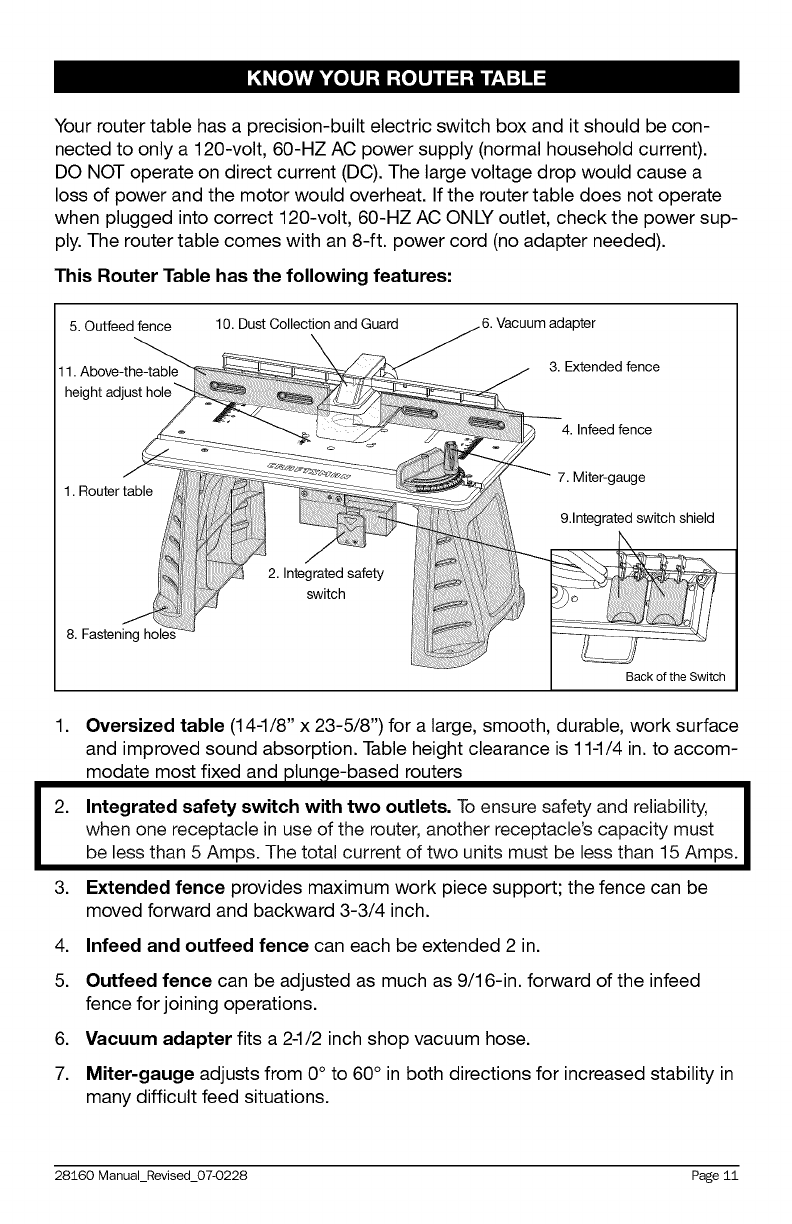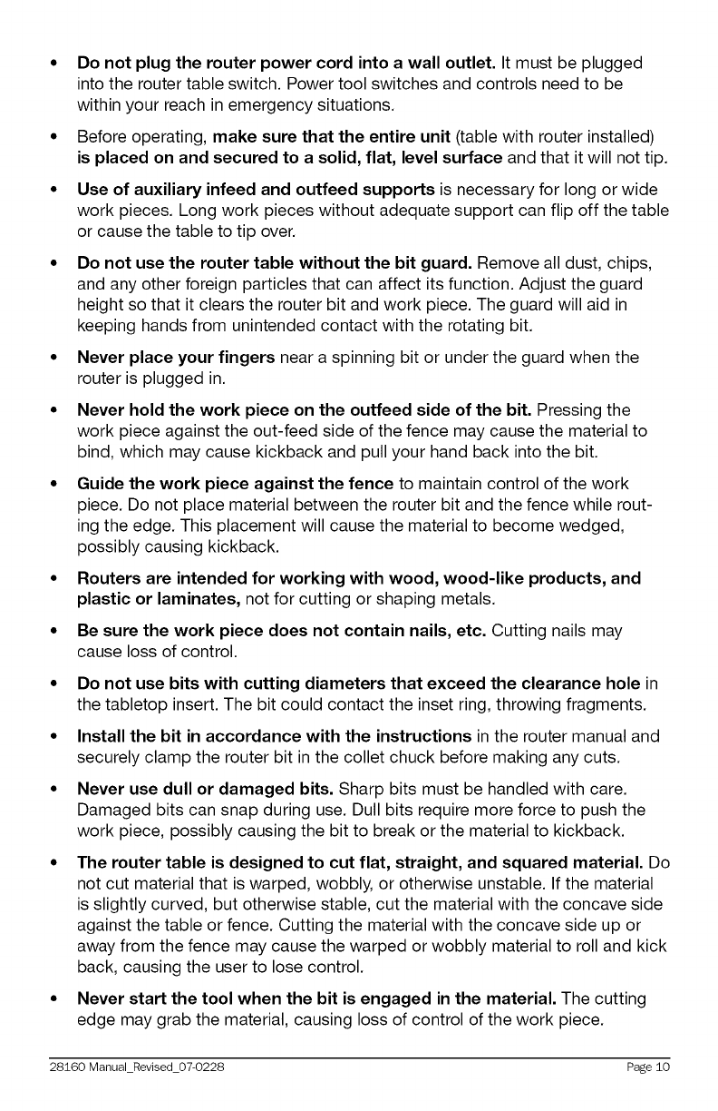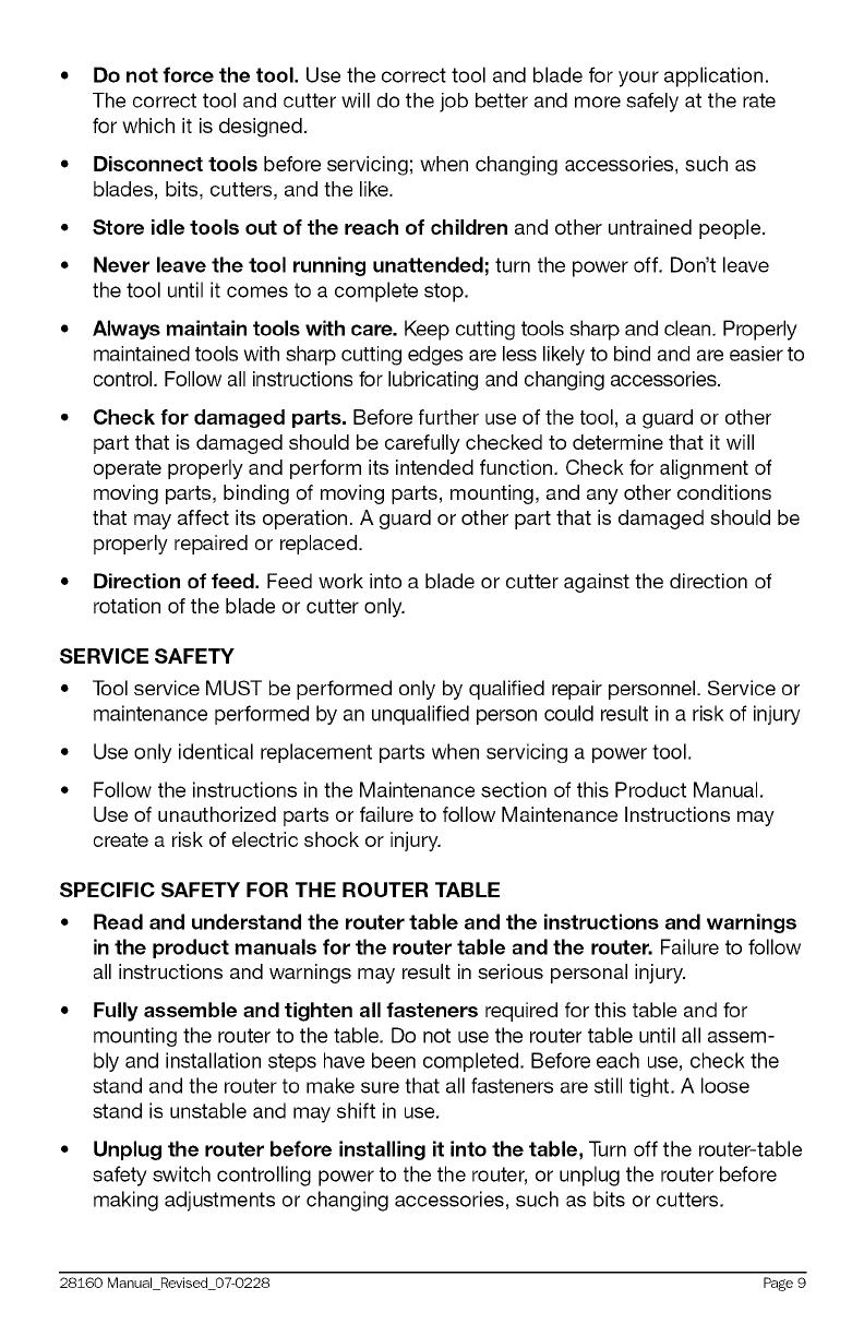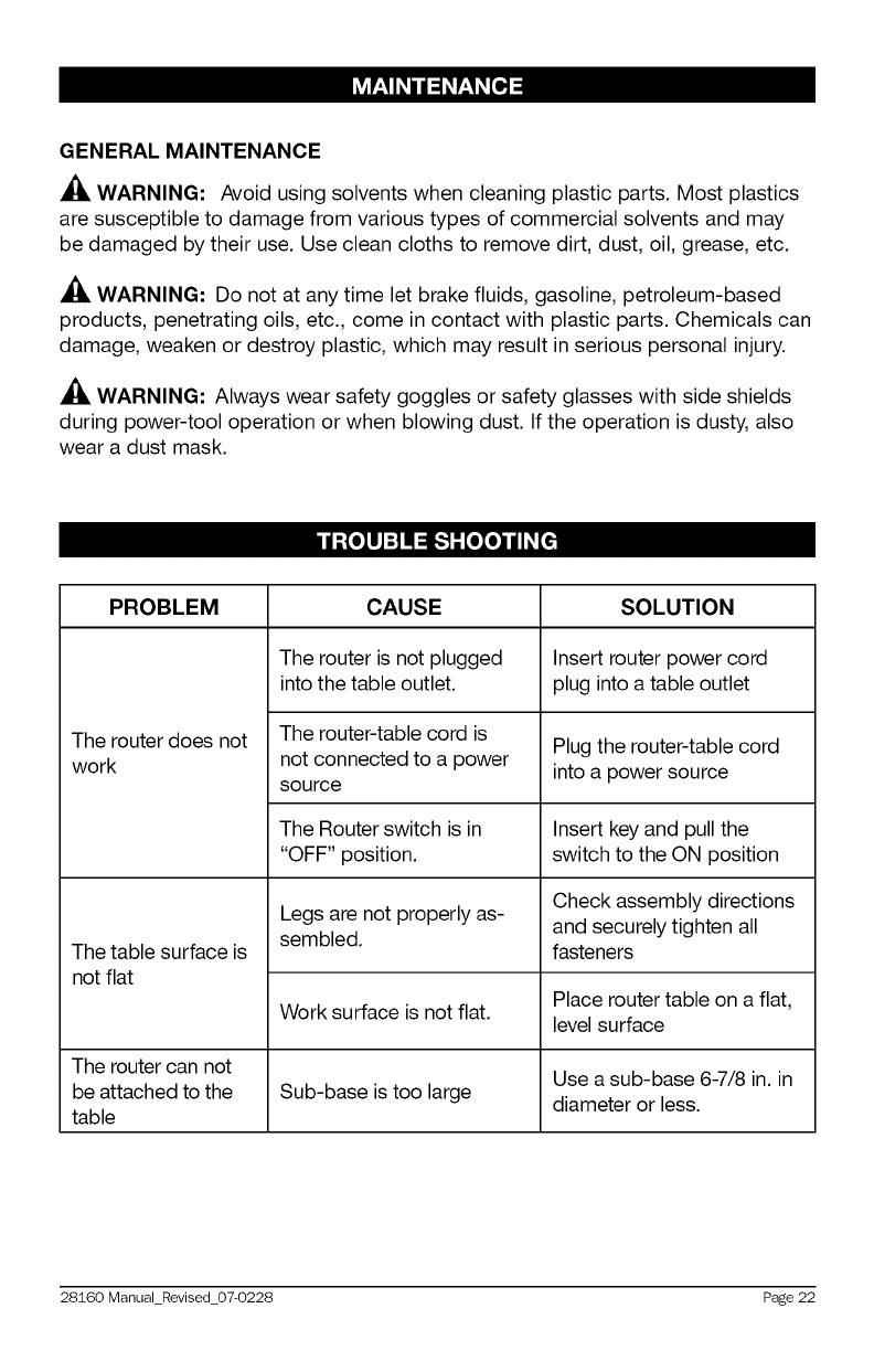 User Manual: Craftsman 32028160 32028160 CRAFTSMAN ROUTER TABLE - Manuals and Guides View the owners manual for your CRAFTSMAN ROUTER TABLE #32028160. Home:Tool Parts:Craftsman Parts:Craftsman ROUTER TABLE Manual