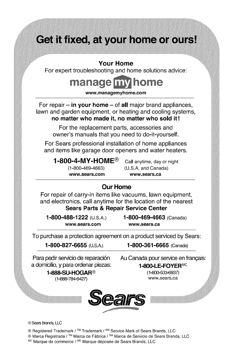 ® Registered Trademark /TMTrademark /SMService Mark of Sears Brands, LLC