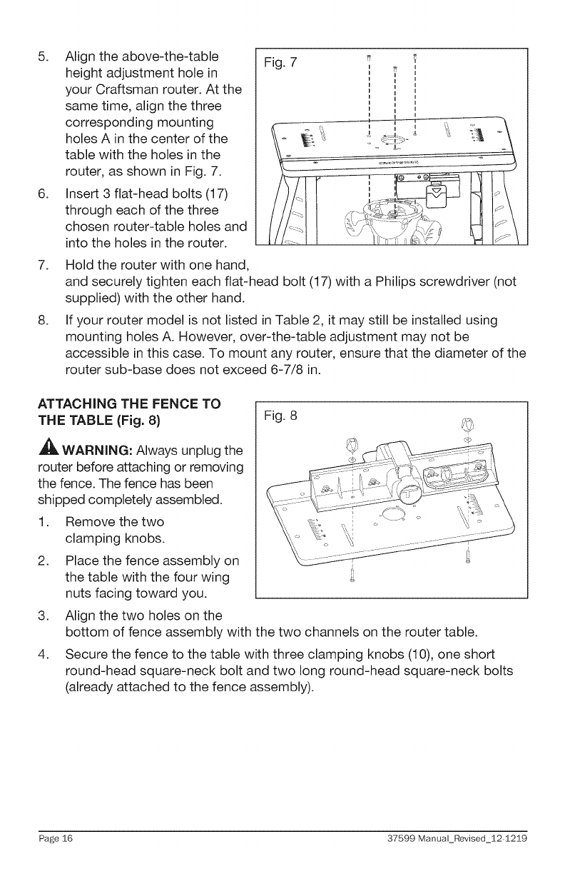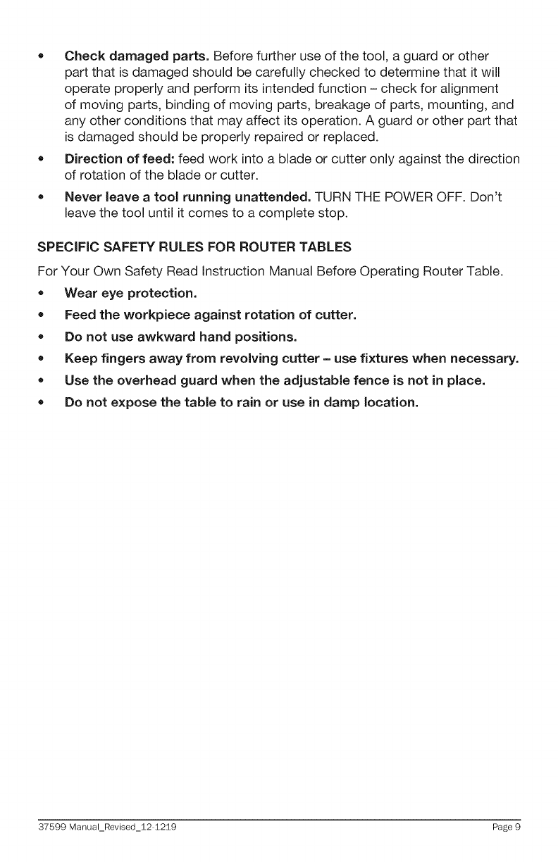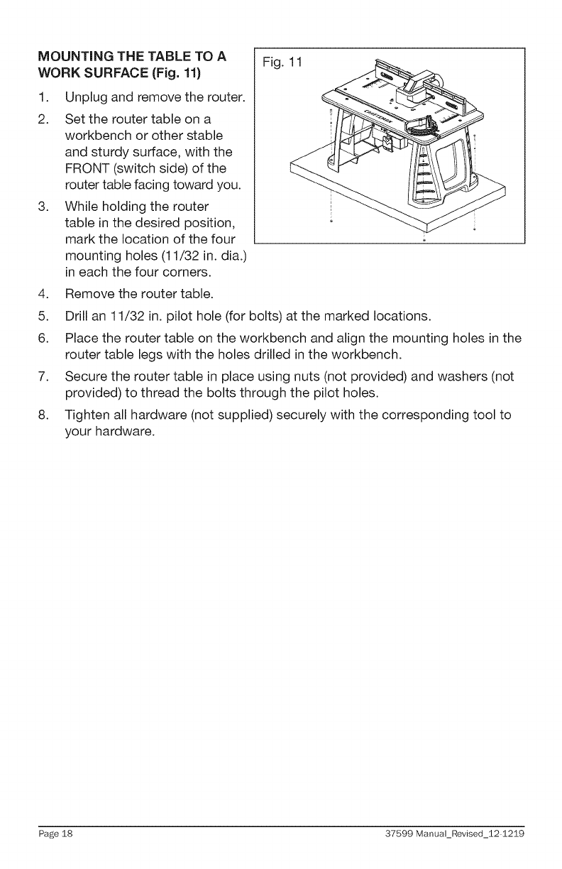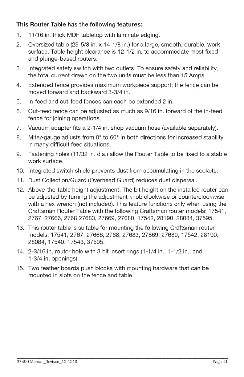Craftsman 32037599 User Manual ROUTER TABLE Manuals And Guides 1311239L