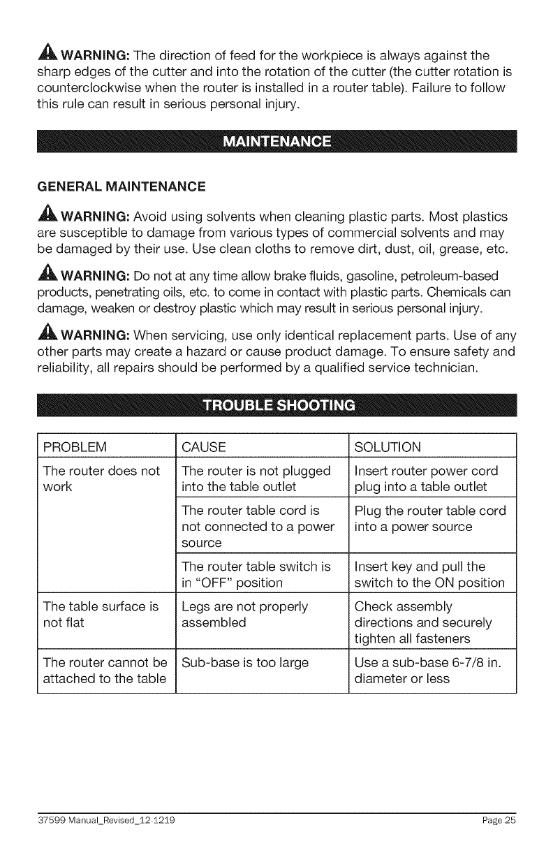 counterclockwise when the router is installed in a router table). Failure to follow