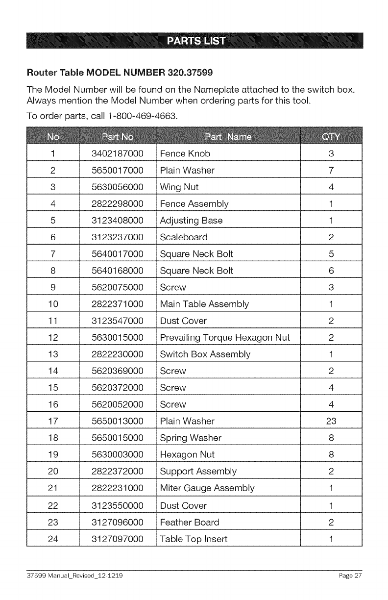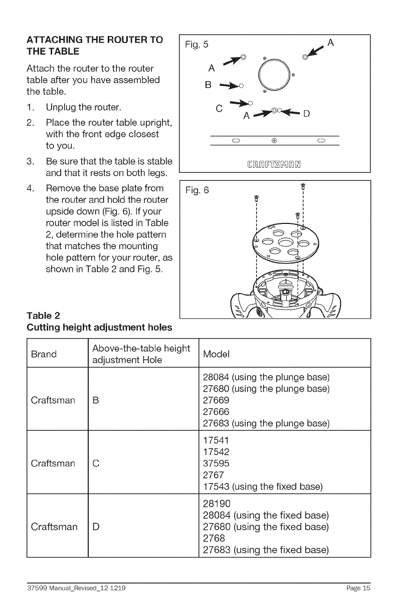 User Manual: Craftsman 32037599 32037599 CRAFTSMAN ROUTER TABLE - Manuals and Guides View the owners manual for your CRAFTSMAN ROUTER TABLE #32037599. Home:Tool Parts:Craftsman Parts:Craftsman ROUTER TABLE Manual