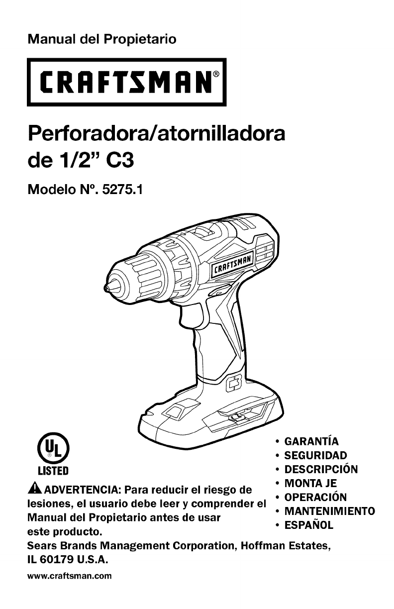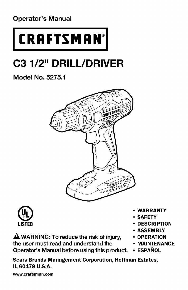 User Manual: Craftsman 32052751 32052751 CRAFTSMAN DRILL DRIVER - Manuals and Guides View the owners manual for your CRAFTSMAN DRILL DRIVER #32052751. Home:Tool Parts:Craftsman Parts:Craftsman DRILL DRIVER Manual