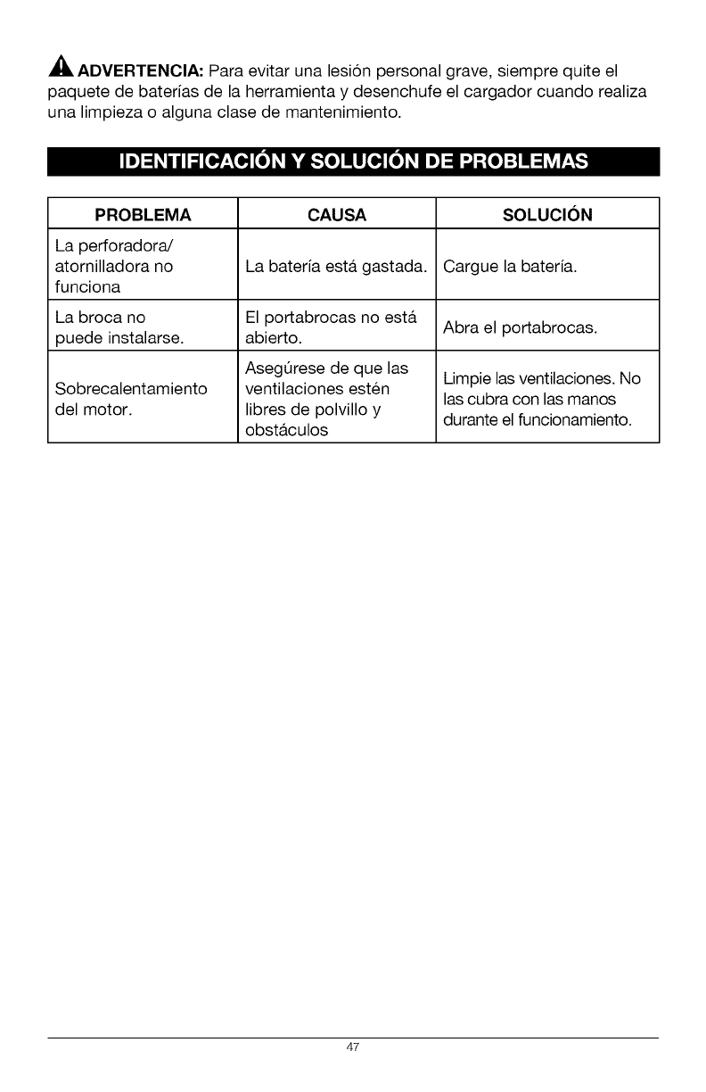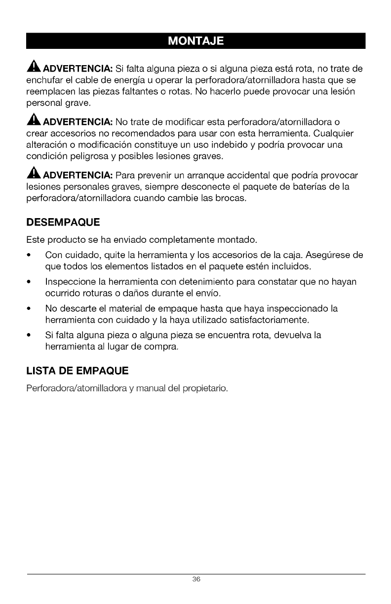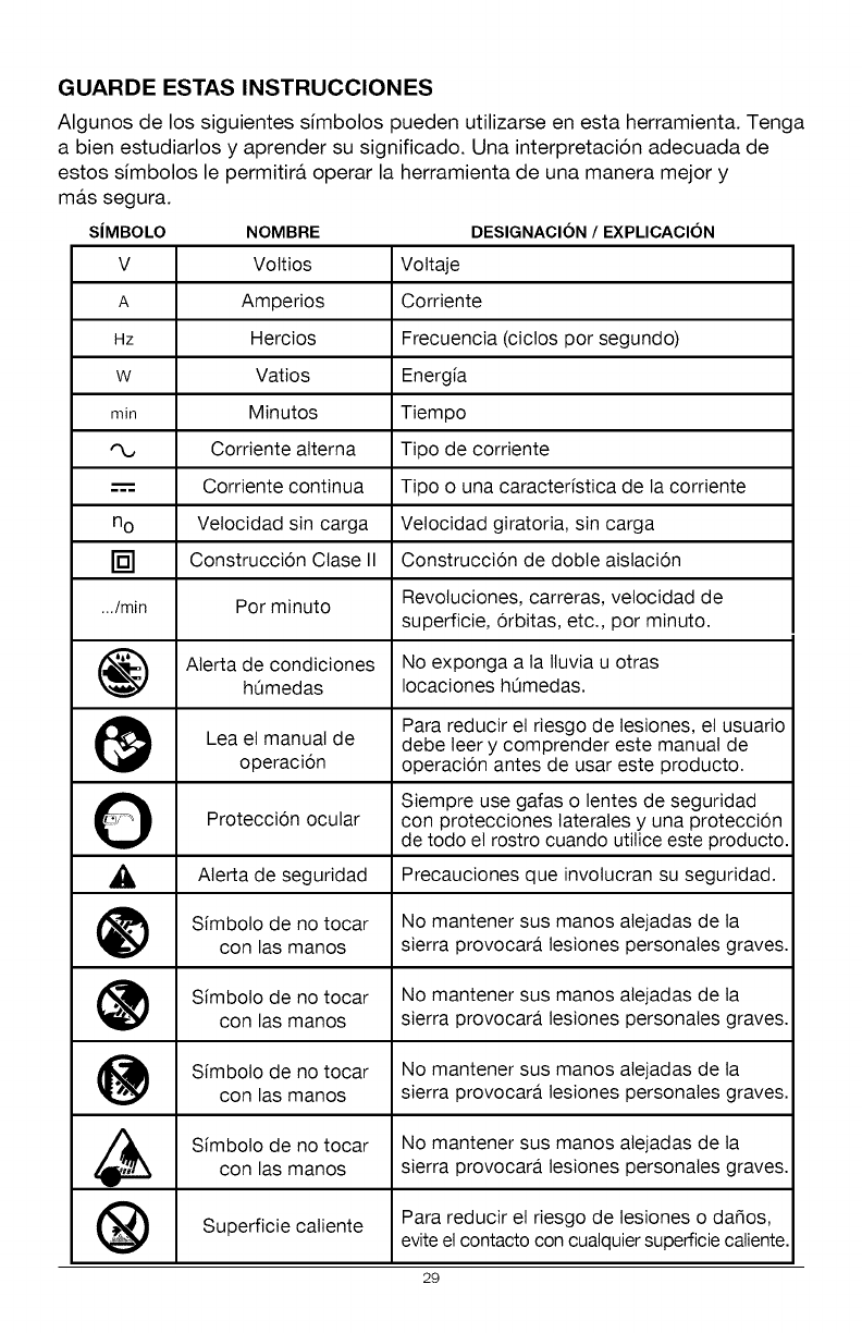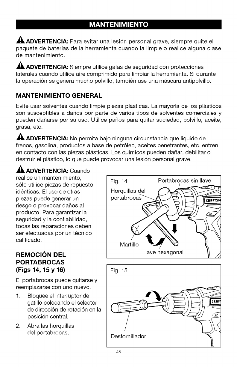 ADVERTENClA: Para evitar una lesi6n personal grave, siempre quite el