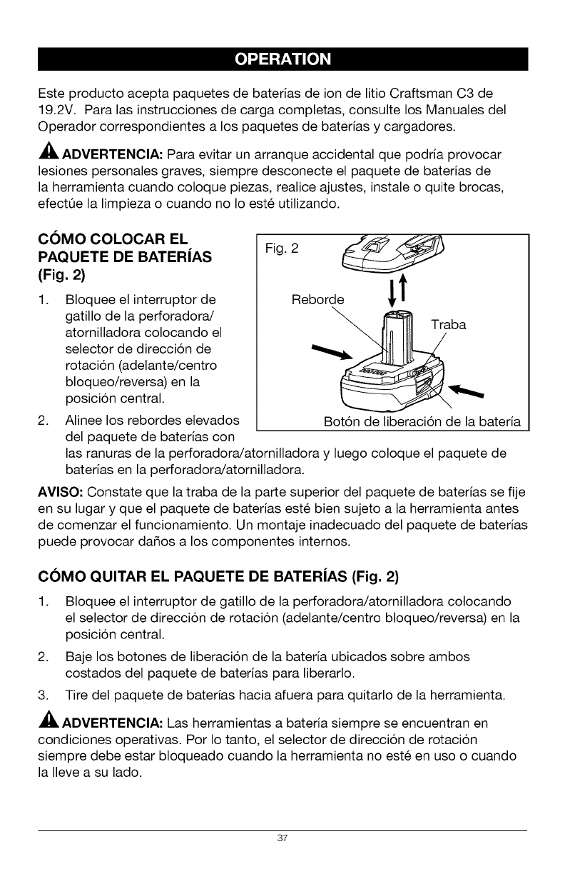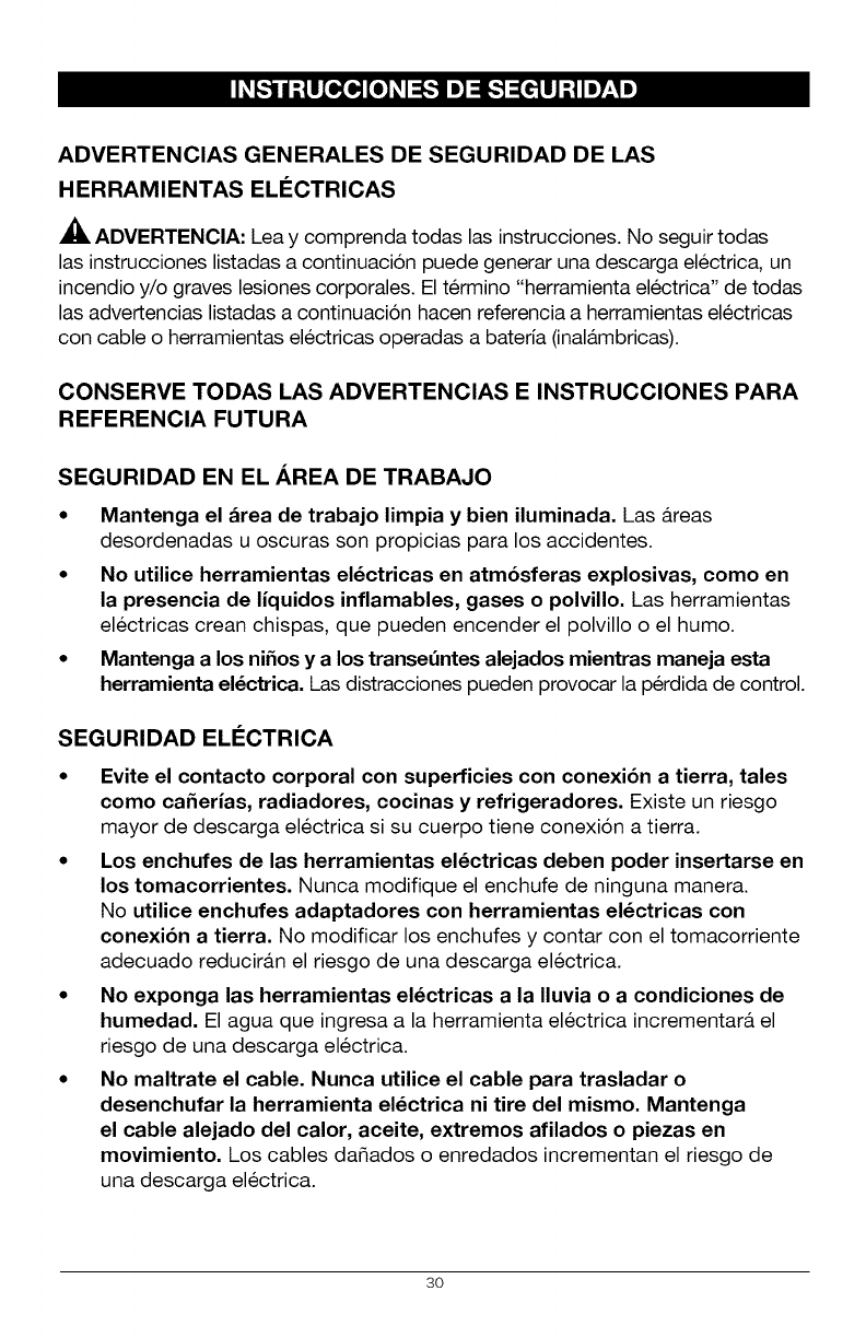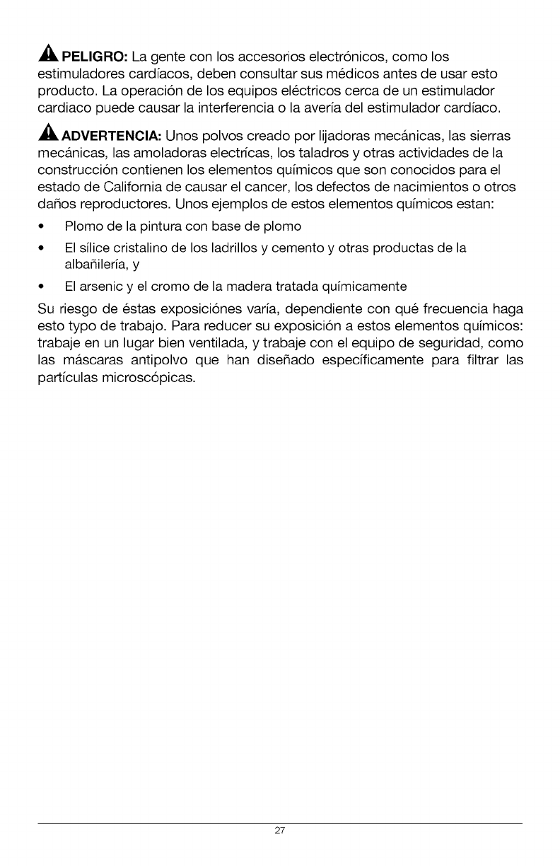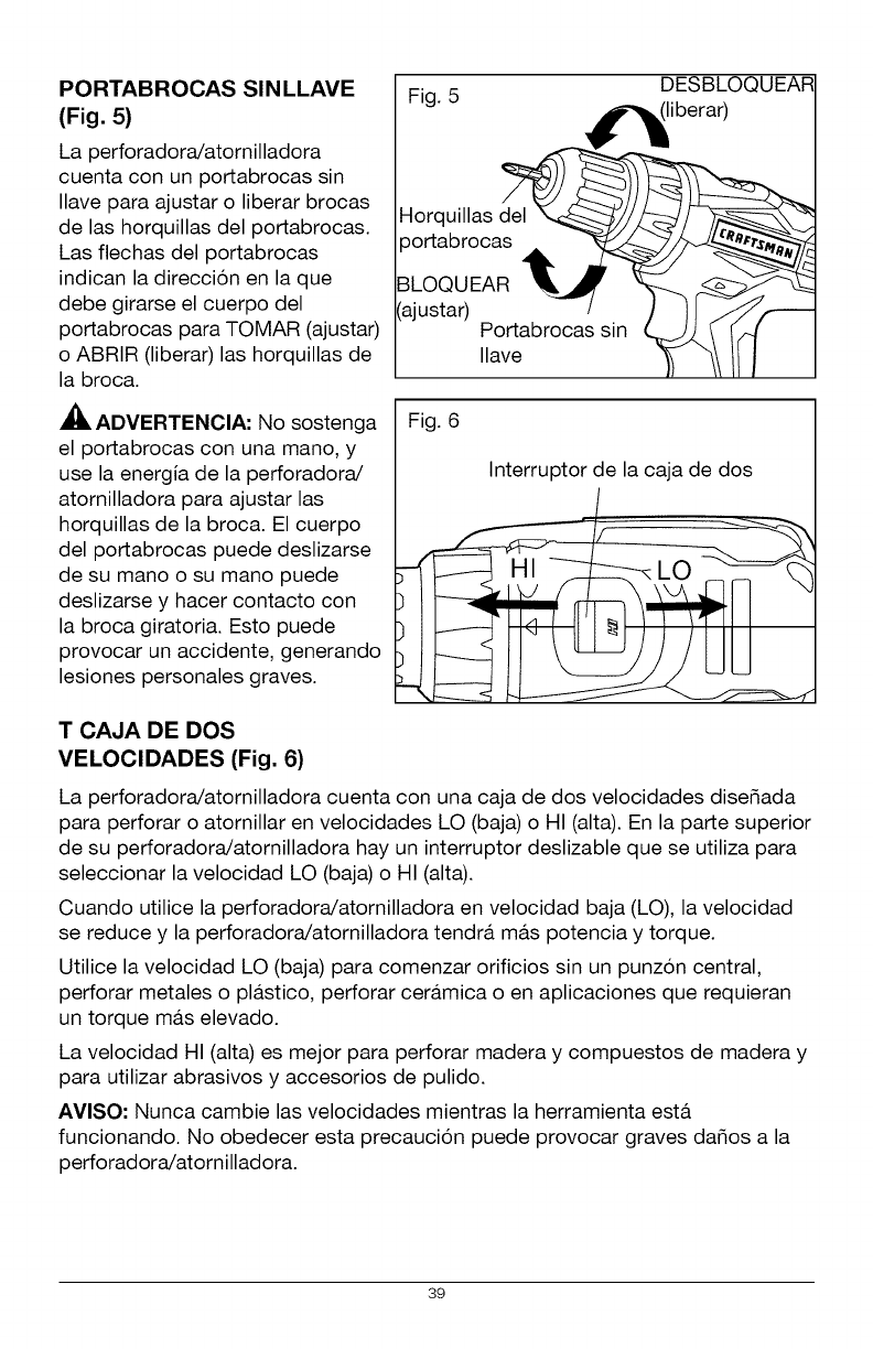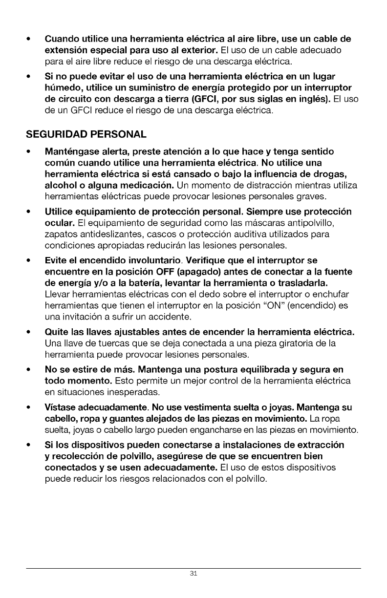 ADVERTENClA: Para evitar una lesi6n personal grave, siempre quite el
