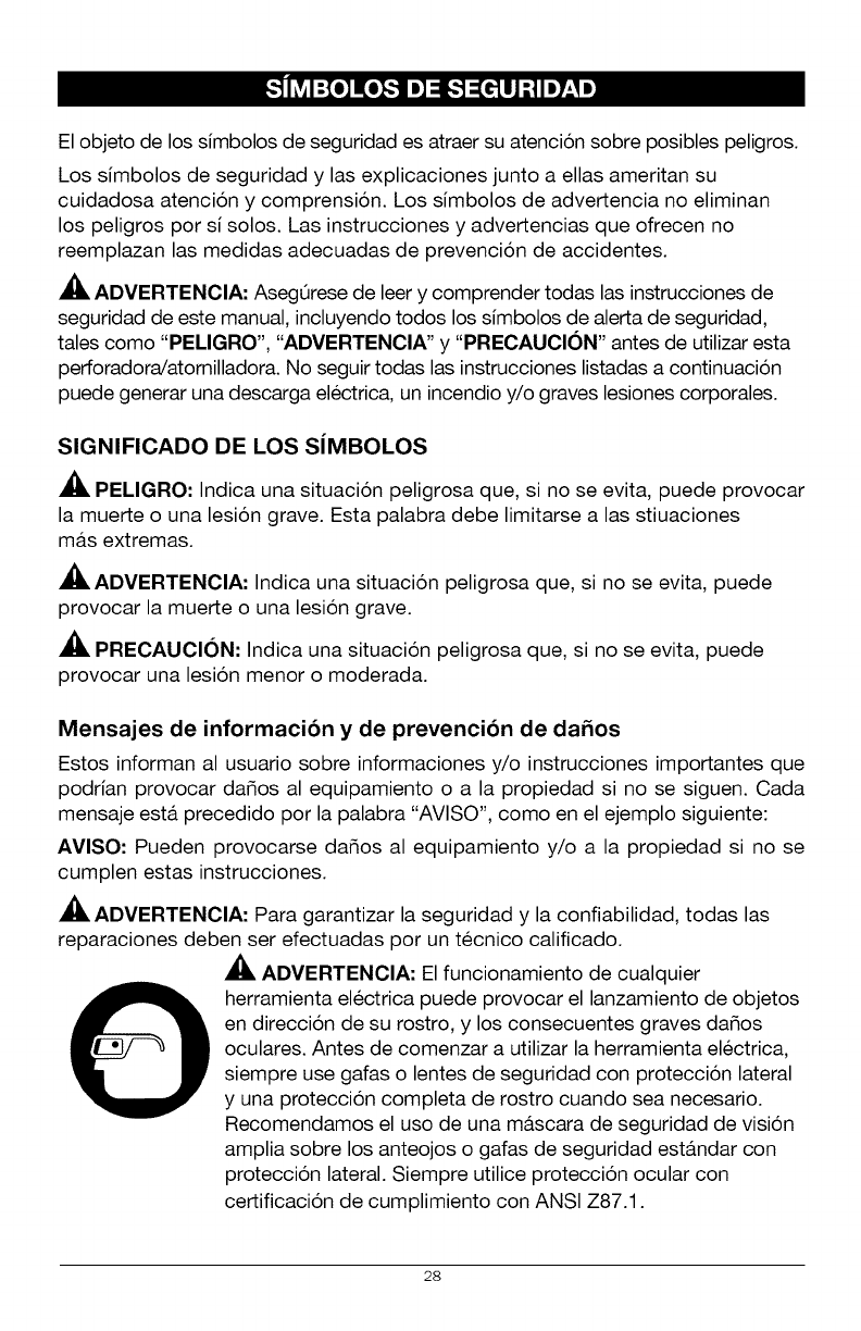 ADVERTENCIA: Siempre use gafas de seguridad con protecciones laterales