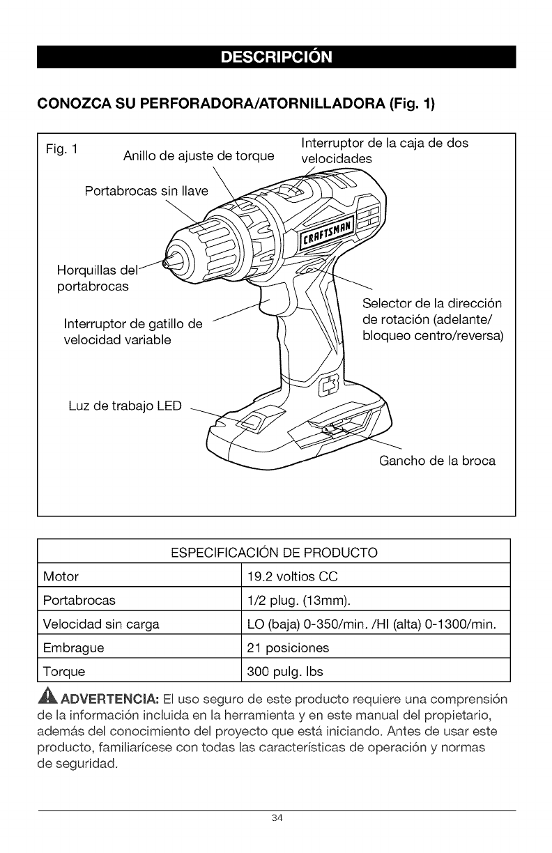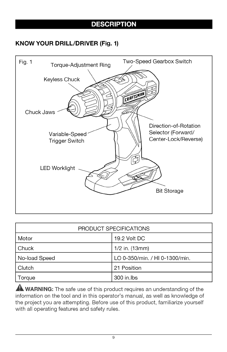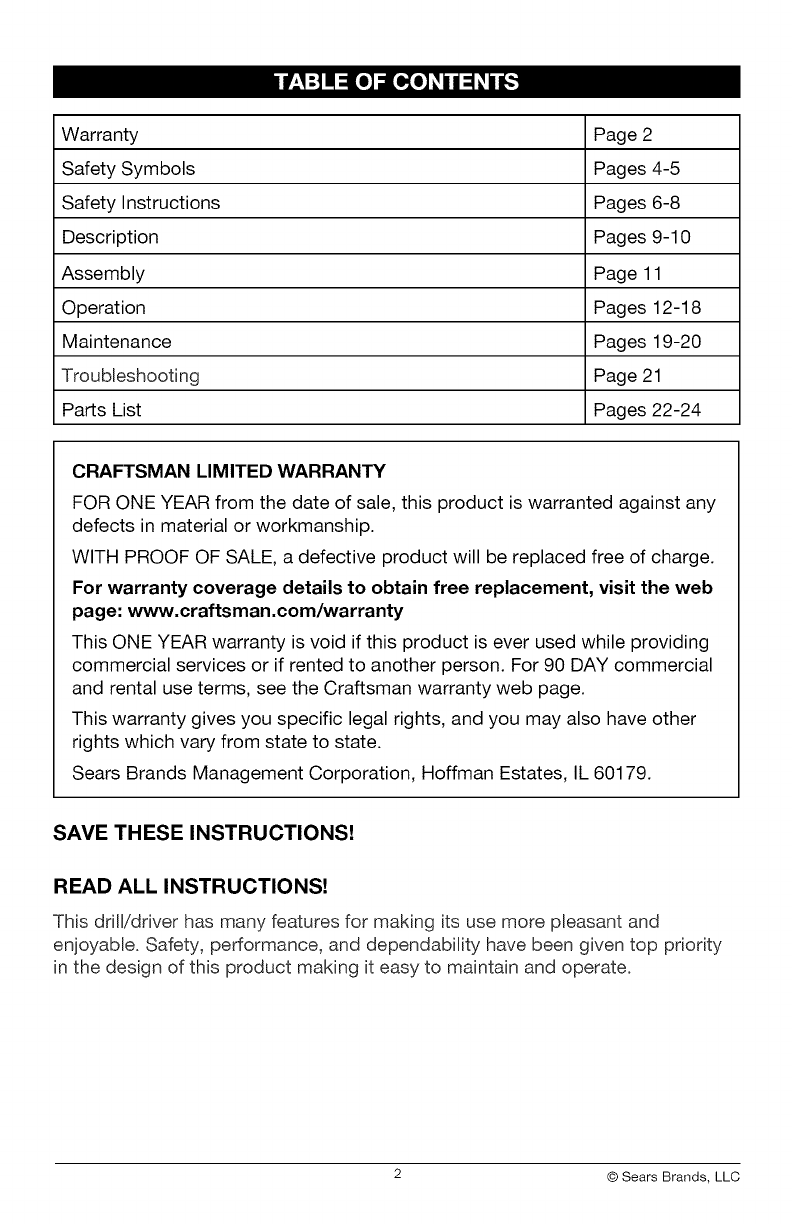 Craftsman 32052751 User Manual DRILL DRIVER Manuals And Guides 1412340L