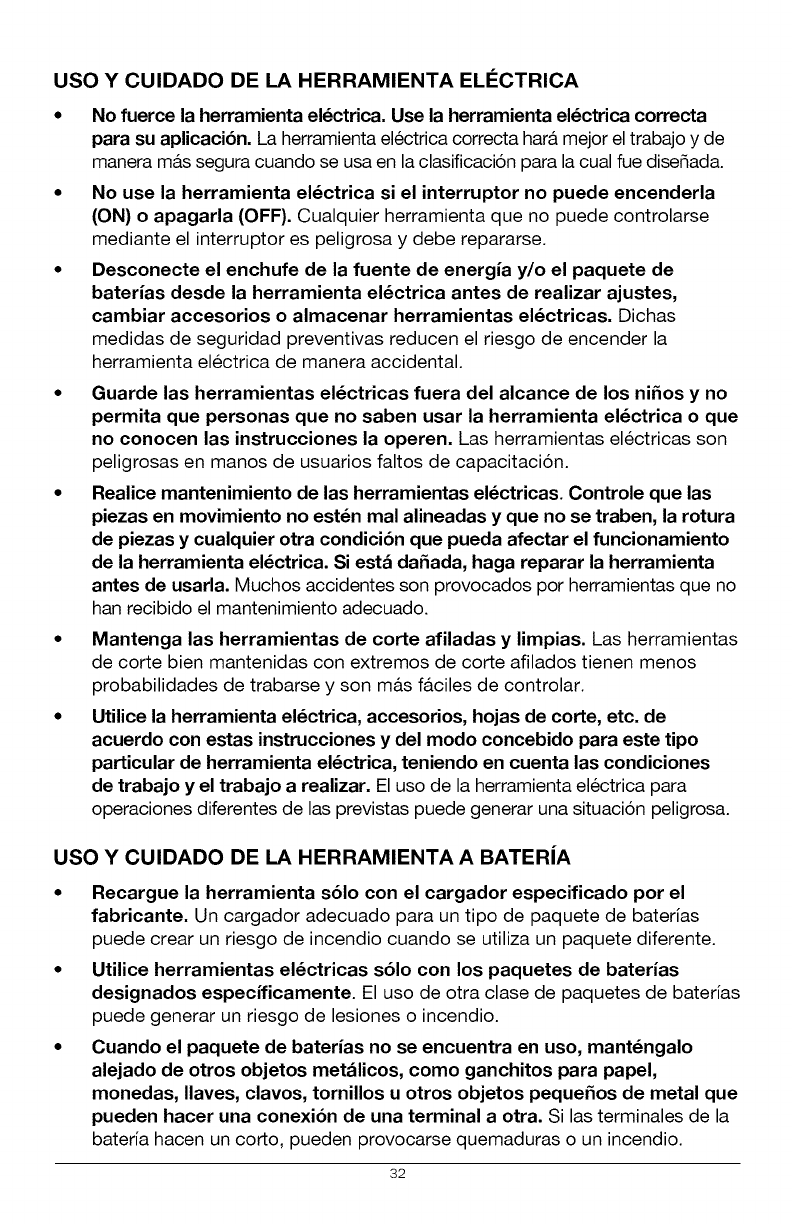 paquete de baterias de la herramienta y desenchufe el cargador cuando realiza