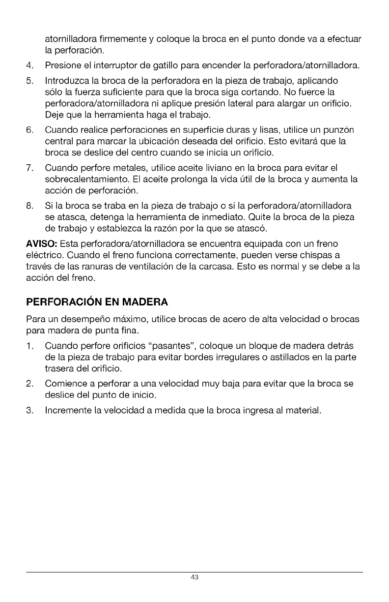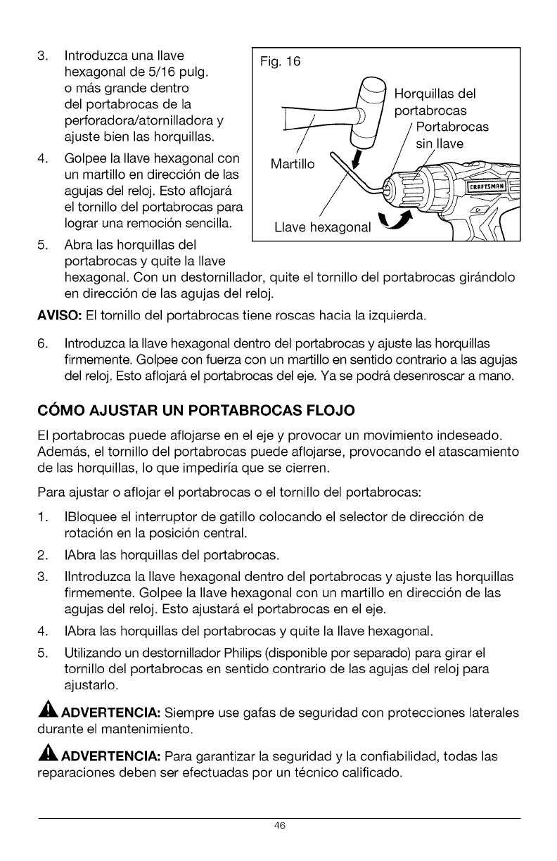 AVISO- El tornillo del portabrocas tiene roscas hacia la izquierda.