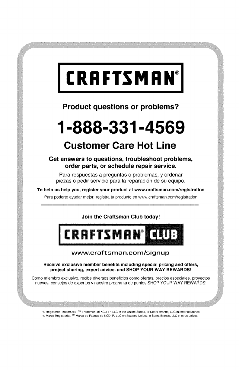 and rental use terms, see the Craftsman warranty web page.