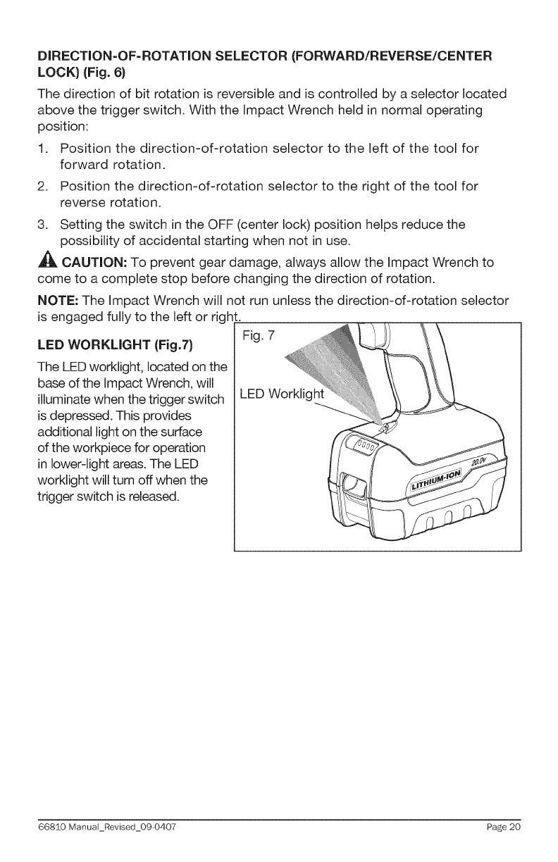 20.0 VOLT LITHIUM=ION CORDLESS 1/2=iN. iMPACT WRENCH MODEL NO.