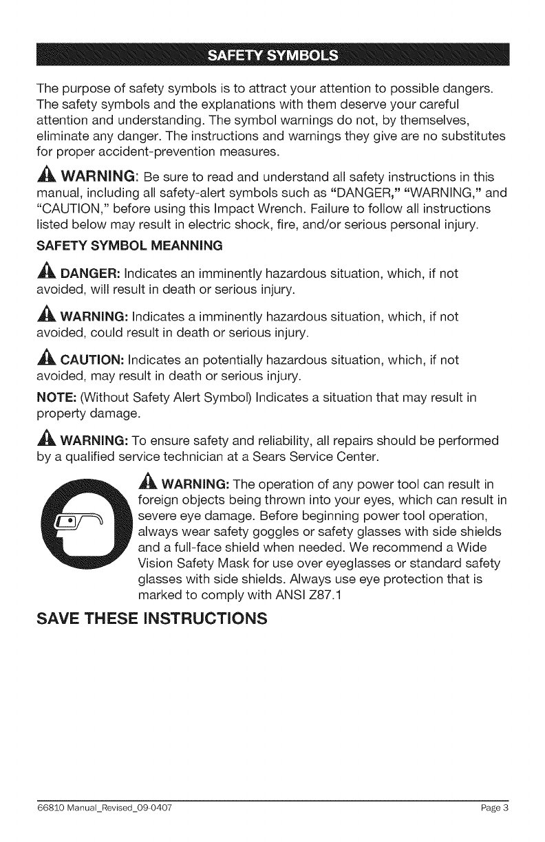 Craftsman 32066810 User Manual IMPACT WRENCH Manuals And Guides L0910009