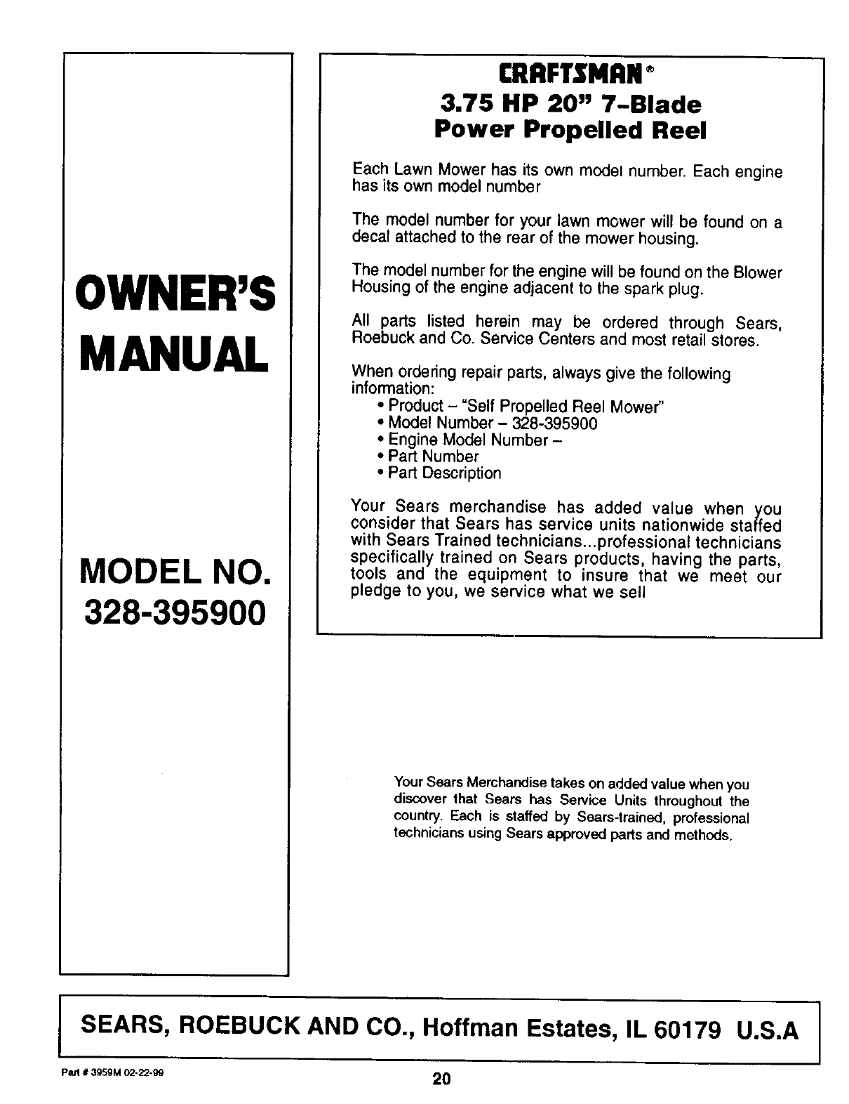 User Manual: Craftsman 328395900 328395900 CRAFTSMAN Lawnmower Power Reel - Manuals and Guides View the owners manual for your CRAFTSMAN Lawnmower Power Reel #328395900. Home:Lawn & Garden Parts:Craftsman Parts:Craftsman Lawnmower Power Reel Manual