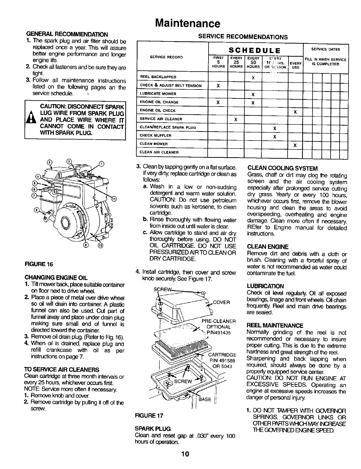 maintenance and check schedule to provide efficient and safe operation. A well-cared-for POWER REEL MOWER
