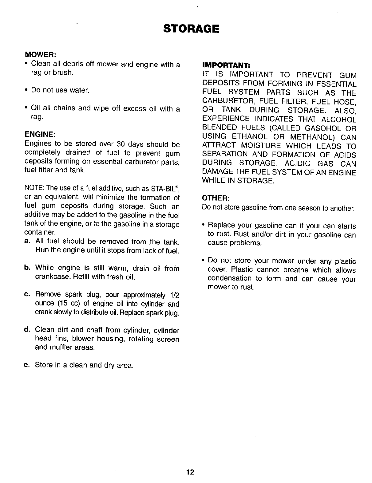 12. DRAIN THE GASOLINE from your mower before transporting your mower inside your car or
