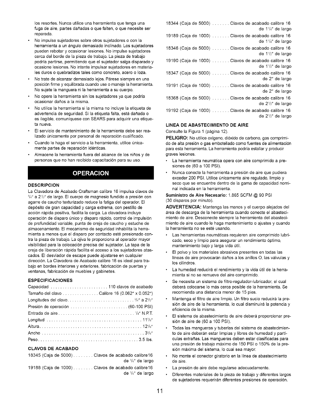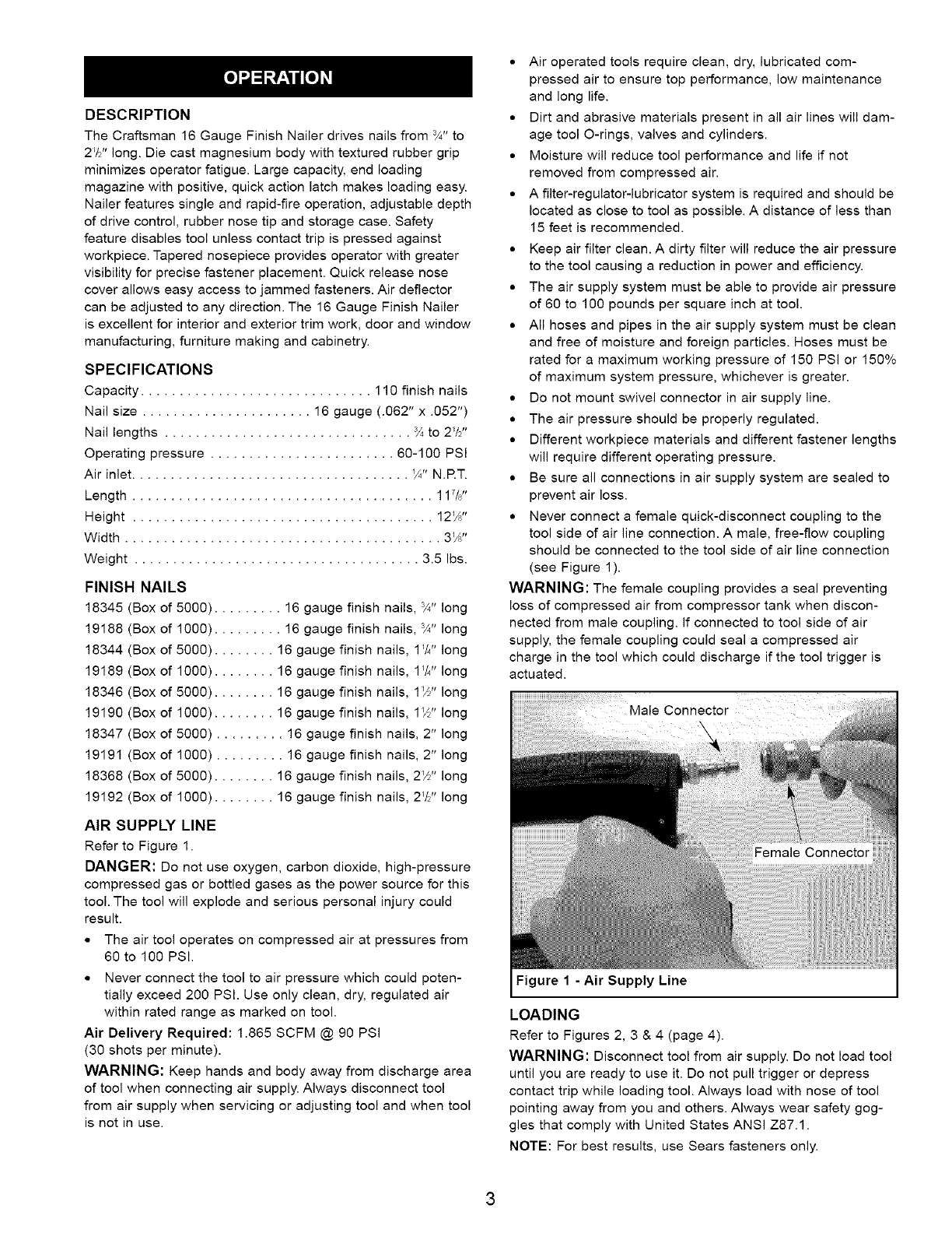 Craftsman 351181750 User Manual NAILER Manuals And Guides L0802707