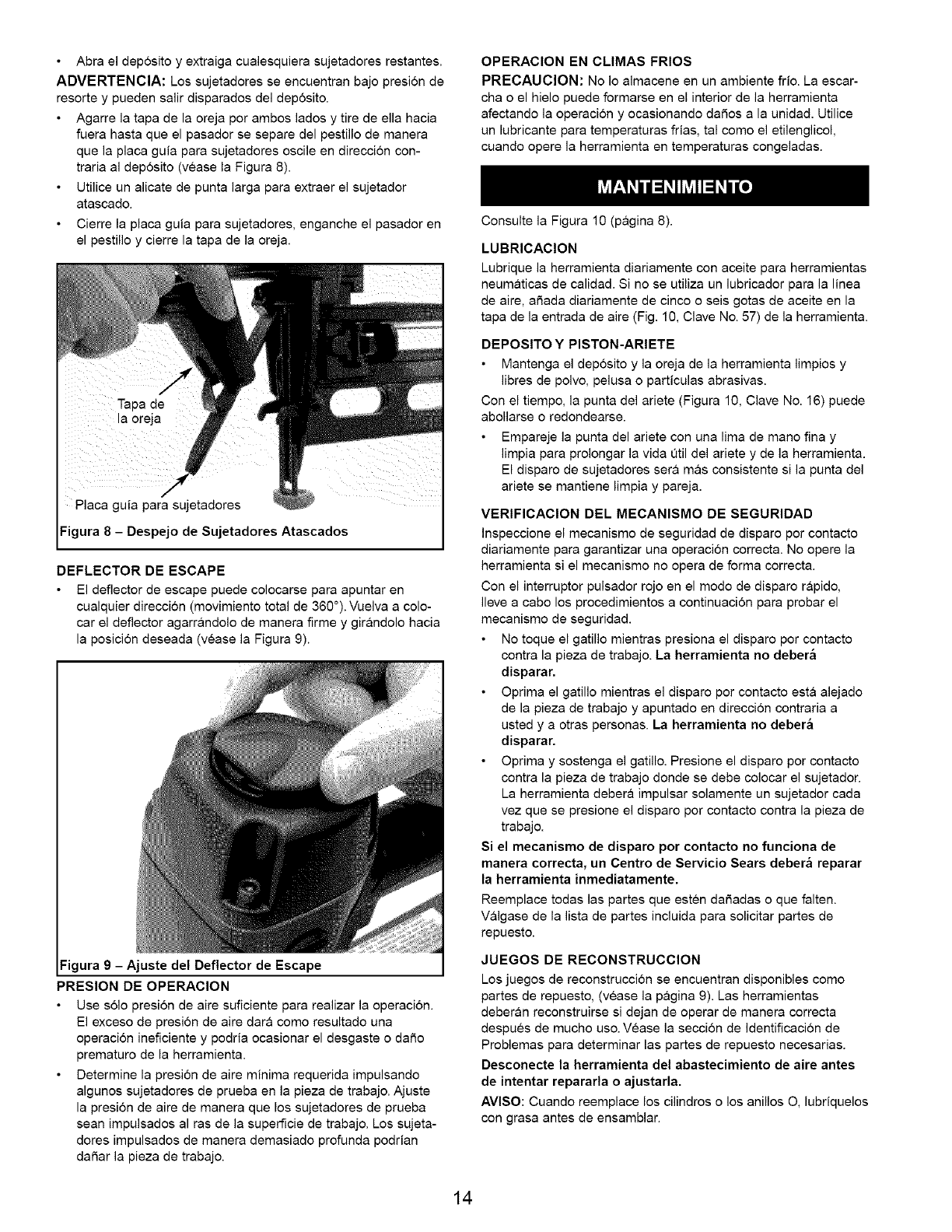 9. Use Qnicamente los sujetadores Sears recomendados