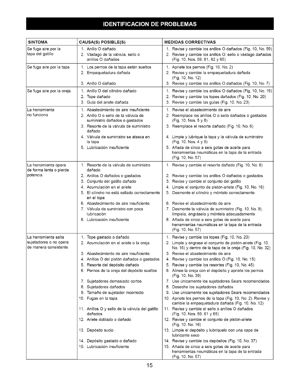 1. Revise y cambie los anillos O daSados (Fig. 10, No. 19)