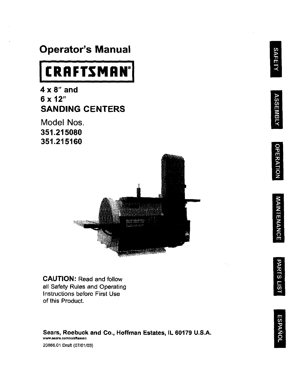 User Manual: Craftsman 351215080 351215080 CRAFTSMAN SANDER - Manuals and Guides View the owners manual for your CRAFTSMAN SANDER #351215080. Home:Tool Parts:Craftsman Parts:Craftsman SANDER Manual