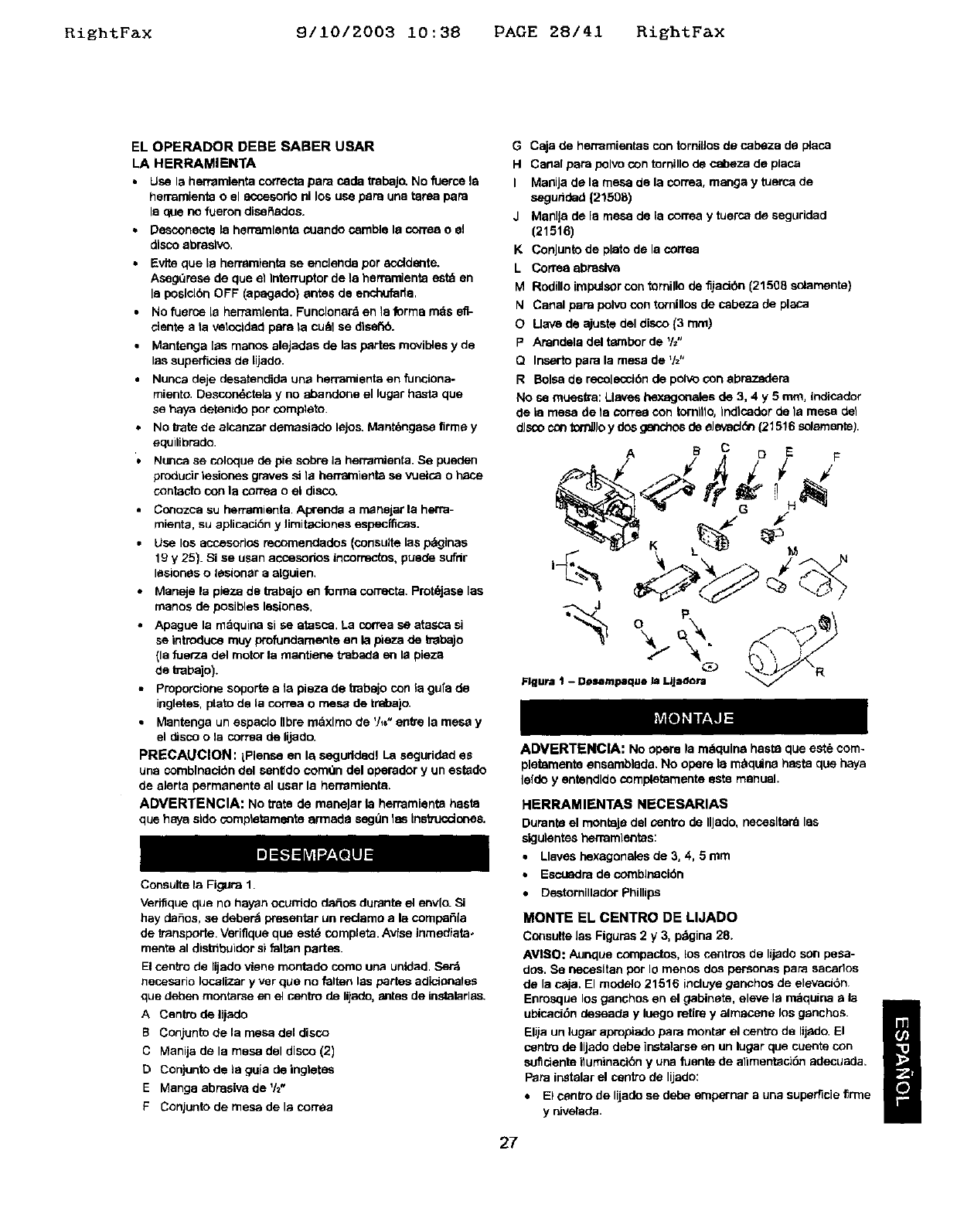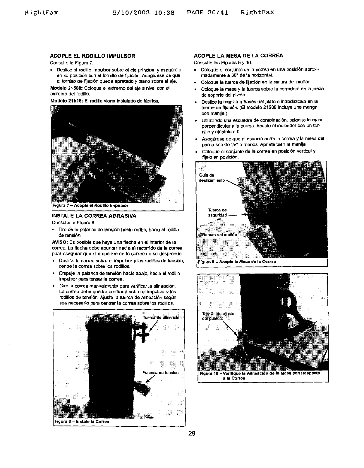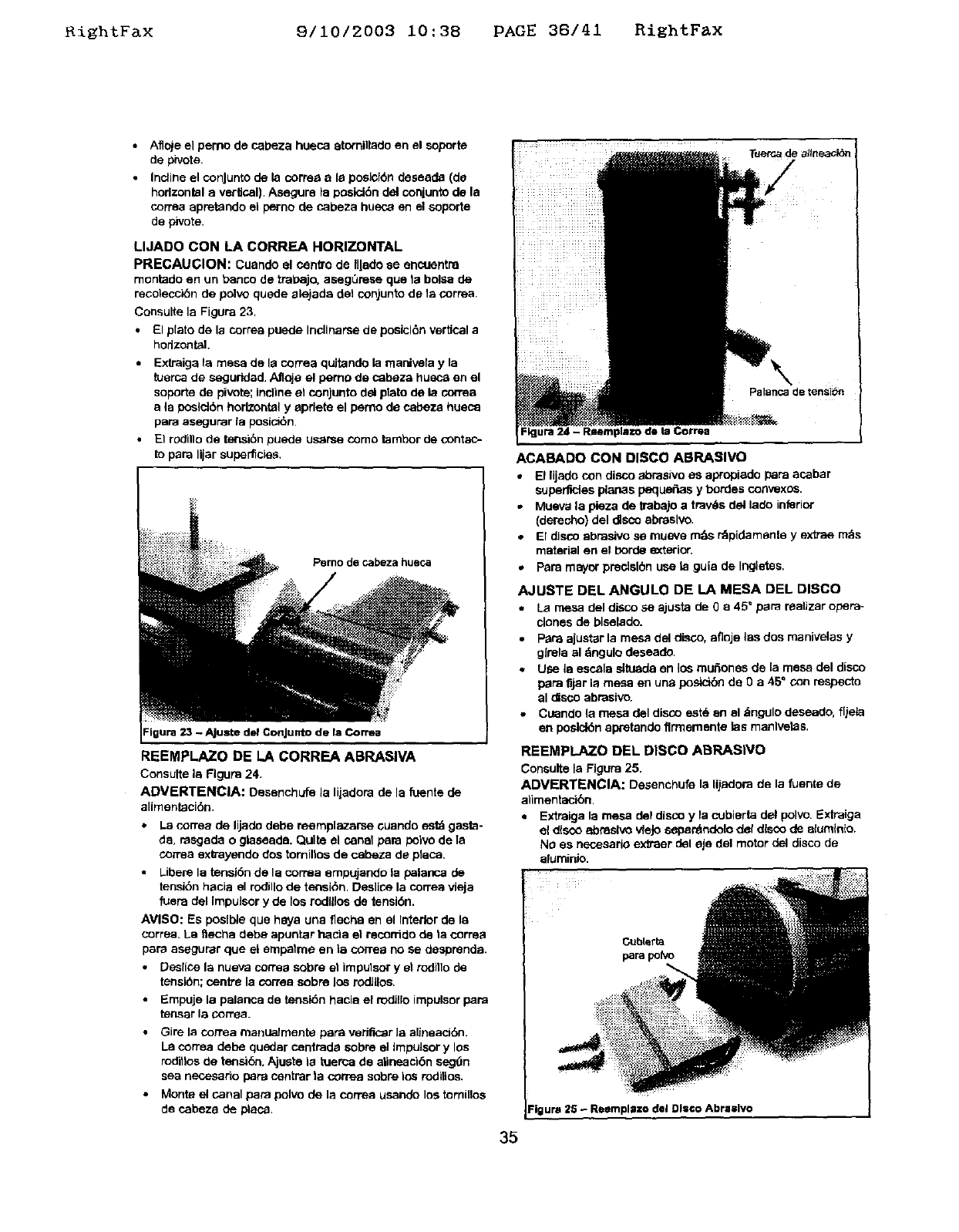 La correa abrasiva se Alineamiento incorrecto Vea la secci(Snoperad6n =Reemplazo de la correa