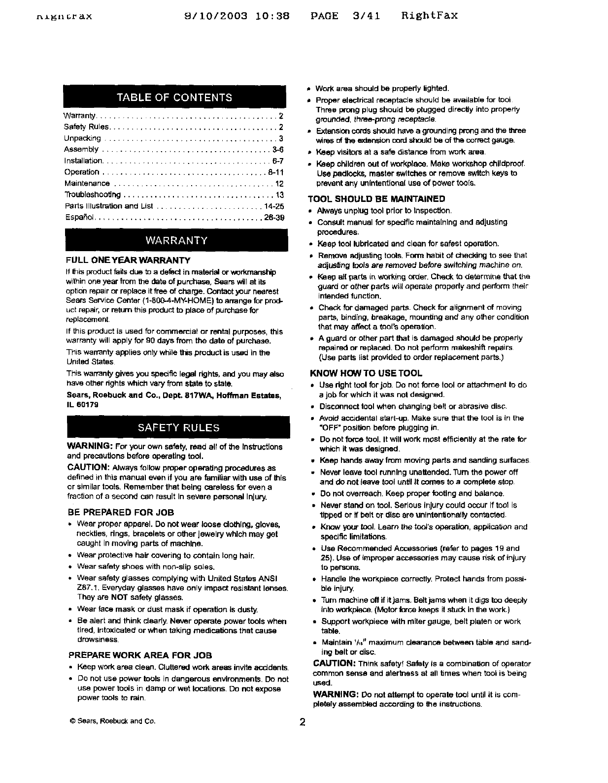 Craftsman 351215080 User Manual SANDER Manuals And Guides L0309510