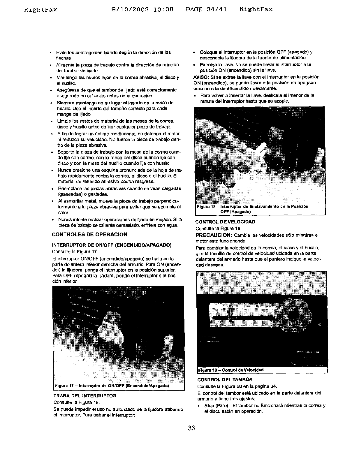en OFF (Apagado) Oscillation" (=Rotacidn con oscilaci6n =)