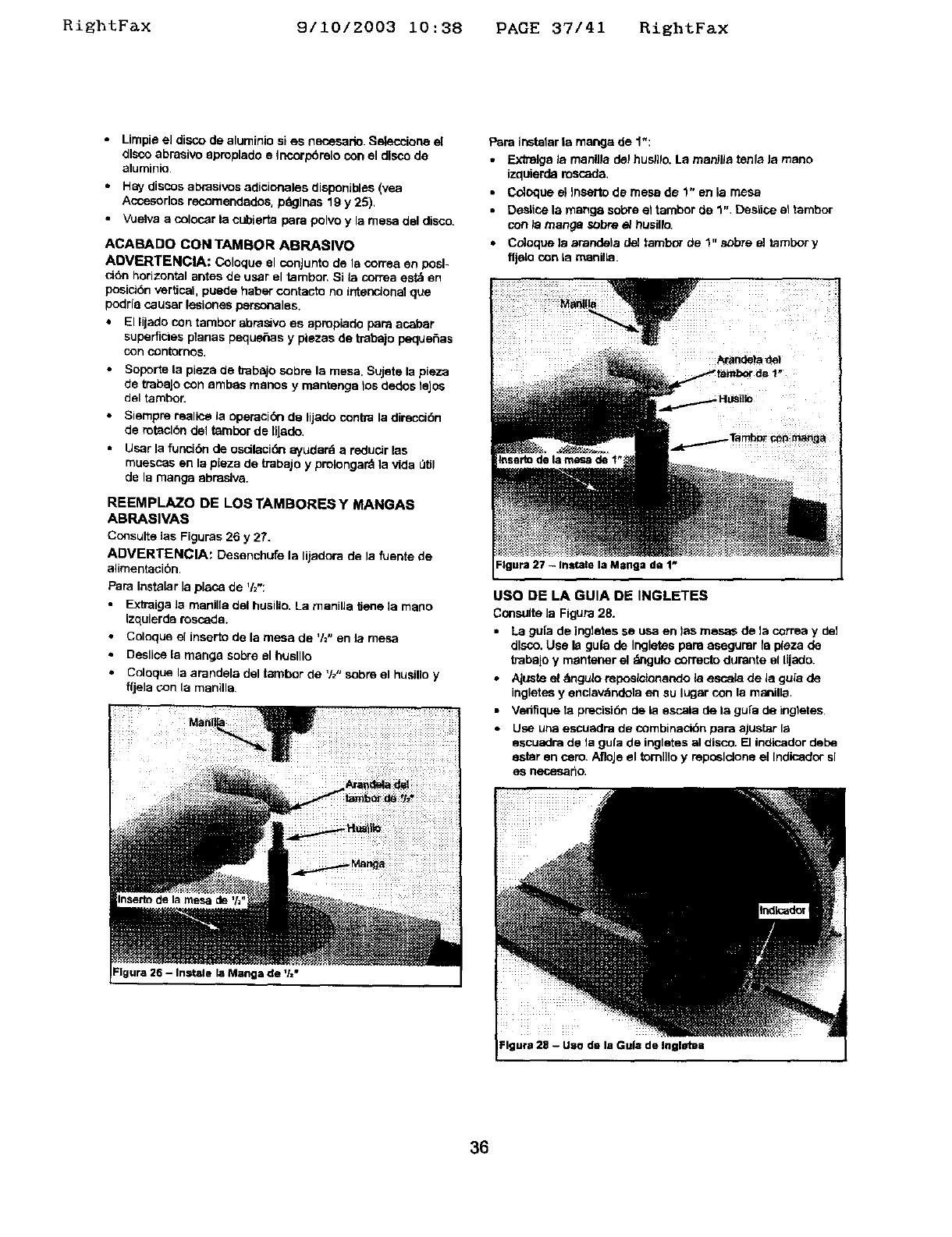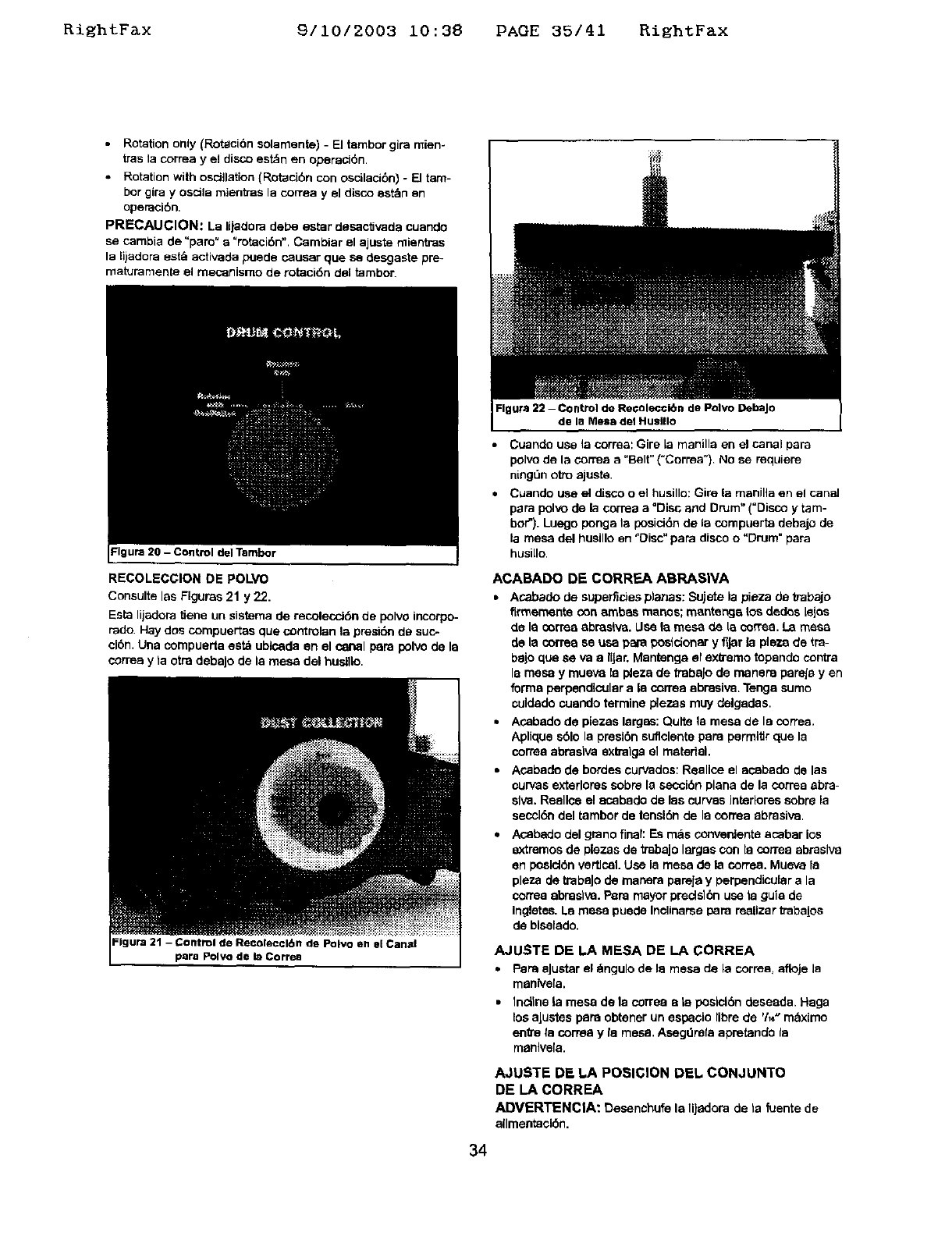 El husillo no oscila 1. La manilla de conirol est_ establecida 1, Colaque la manilla de control en "Rota_on with