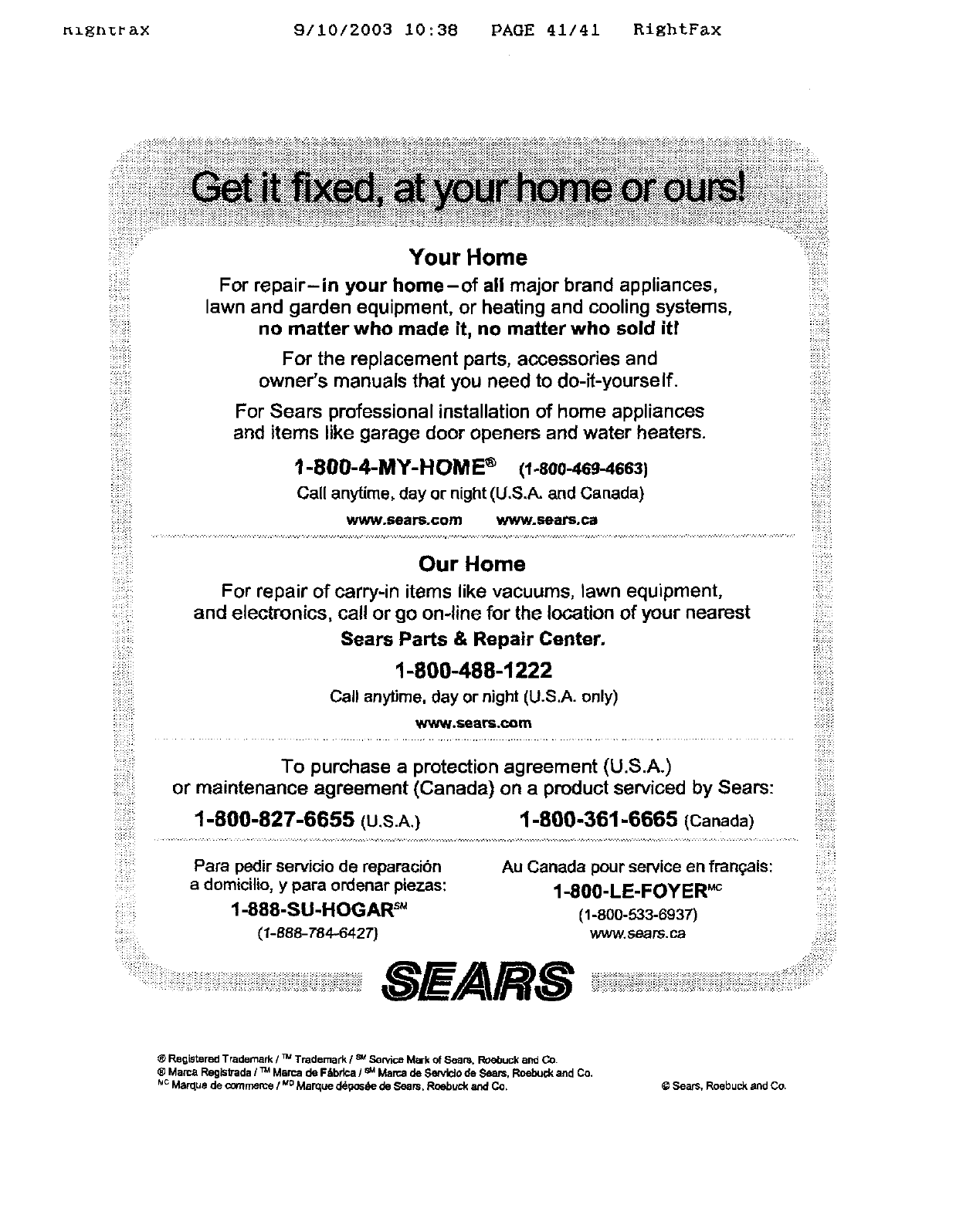 Sears Service Center (1-800-4.MY-HOME) to arrange for prod-